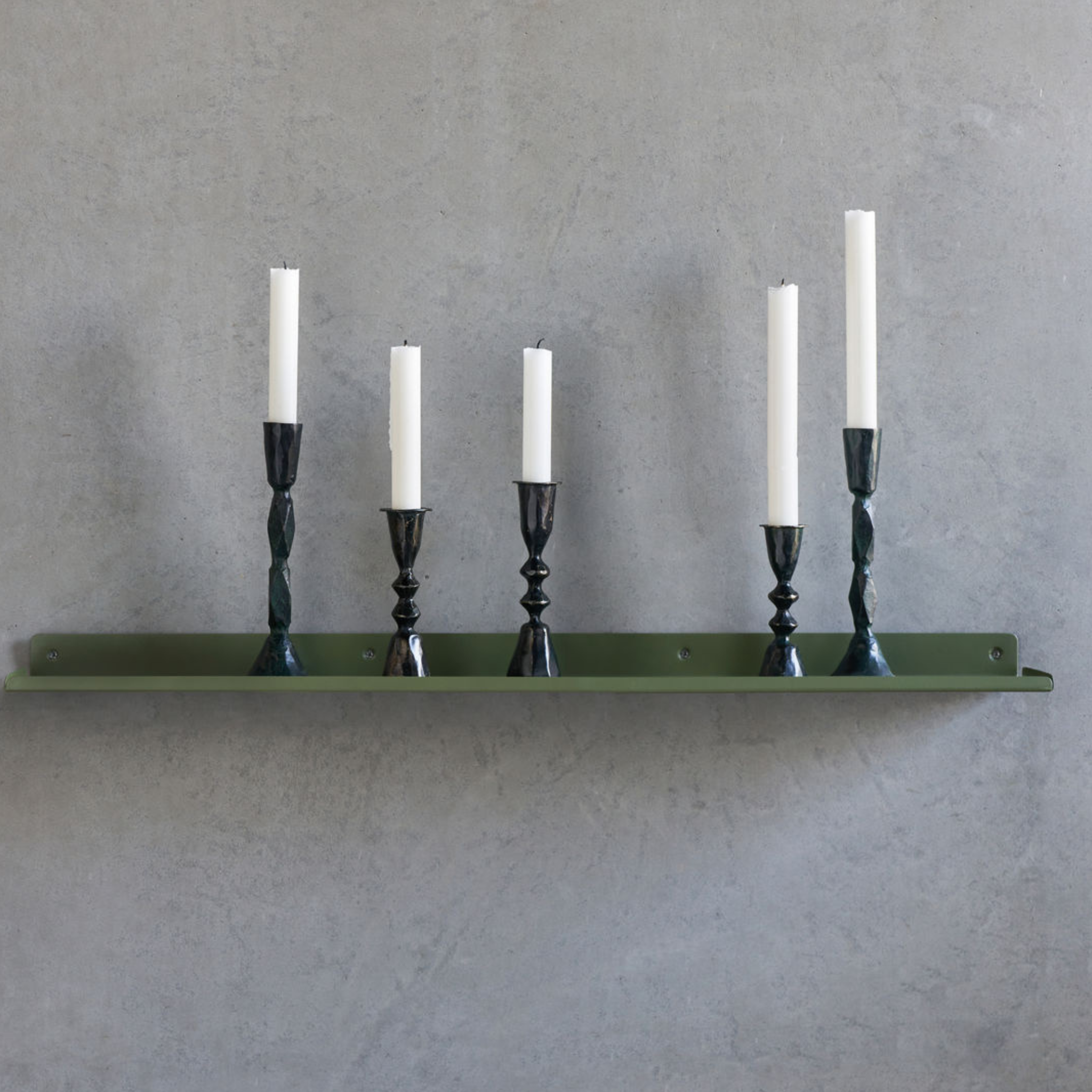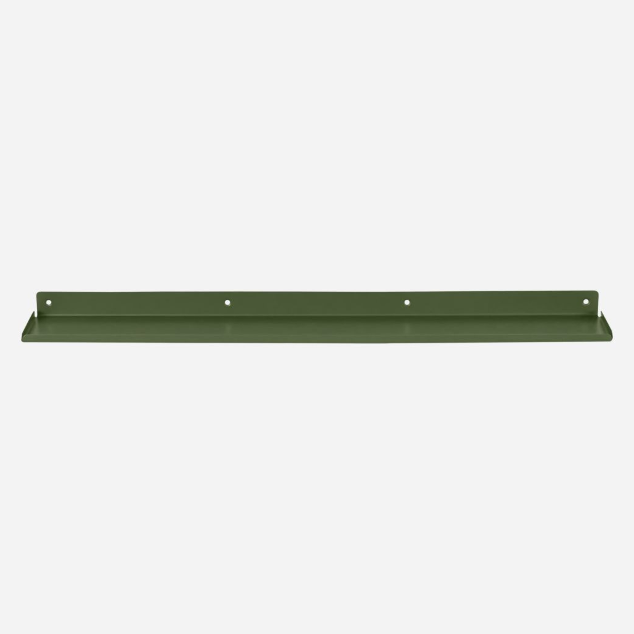 Das Regal heißt Ledge und bietet Ihnen zusätzlichen Stauraum sowohl im Wohnzimmer, im Eingangsbereich als auch im Schlafzimmer. Das glatte Eisenmaterial hat eine zeitlose, grüne Oberfläche und der niedrige Rand umrahmt Ihre Sachen und sorgt dafür, dass sie nicht herunterfallen. Durch den Austausch der Gegenstände im Regal können Sie das Aussehen Ihrer Inneneinrichtung ganz einfach ändern.