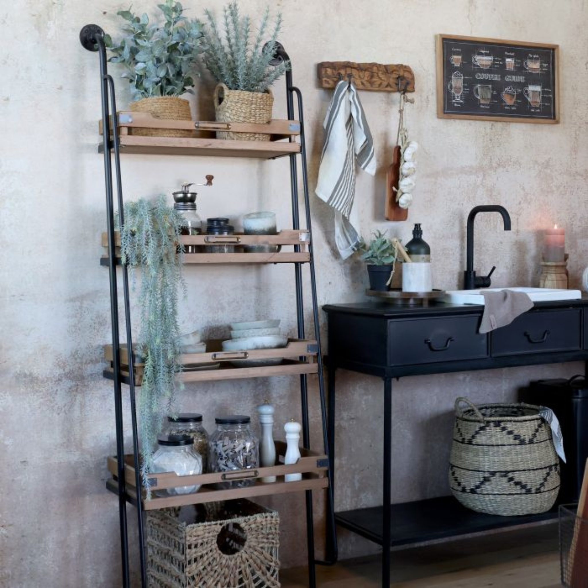 Dieses schöne Regal von Chic Antique ist sowohl praktisch als auch dekorativ.