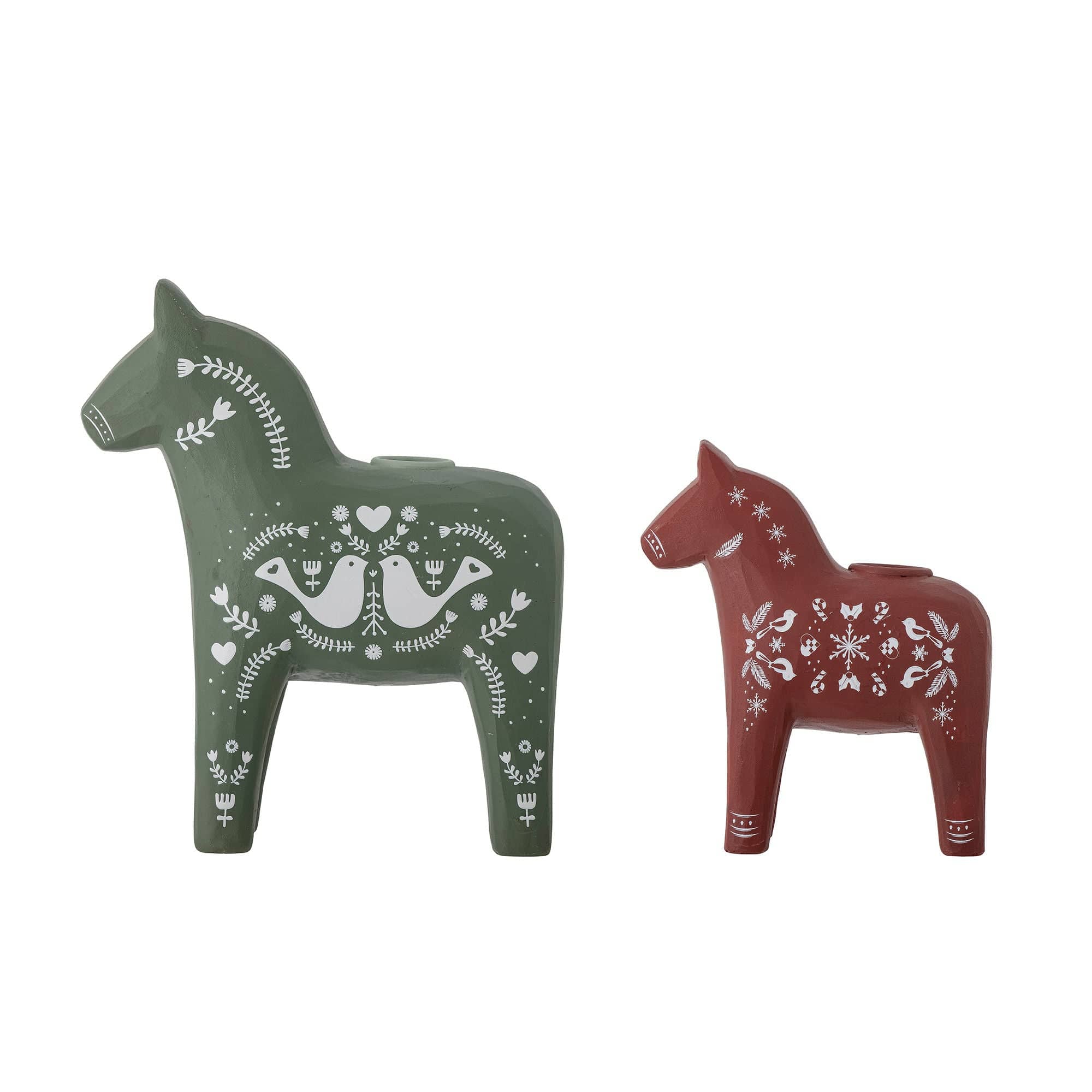 Der Siffer-Kerzenhalter von Bloomingville ist ein Set aus 2 Pferdehaltern, die bereit sind, eine Kerze mit einem 2,2-cm-Sockel Ihrer Wahl zu halten. Sie sind in 2 traditionellen Weihnachtsfarben mit fantastischen Mustern gestaltet.