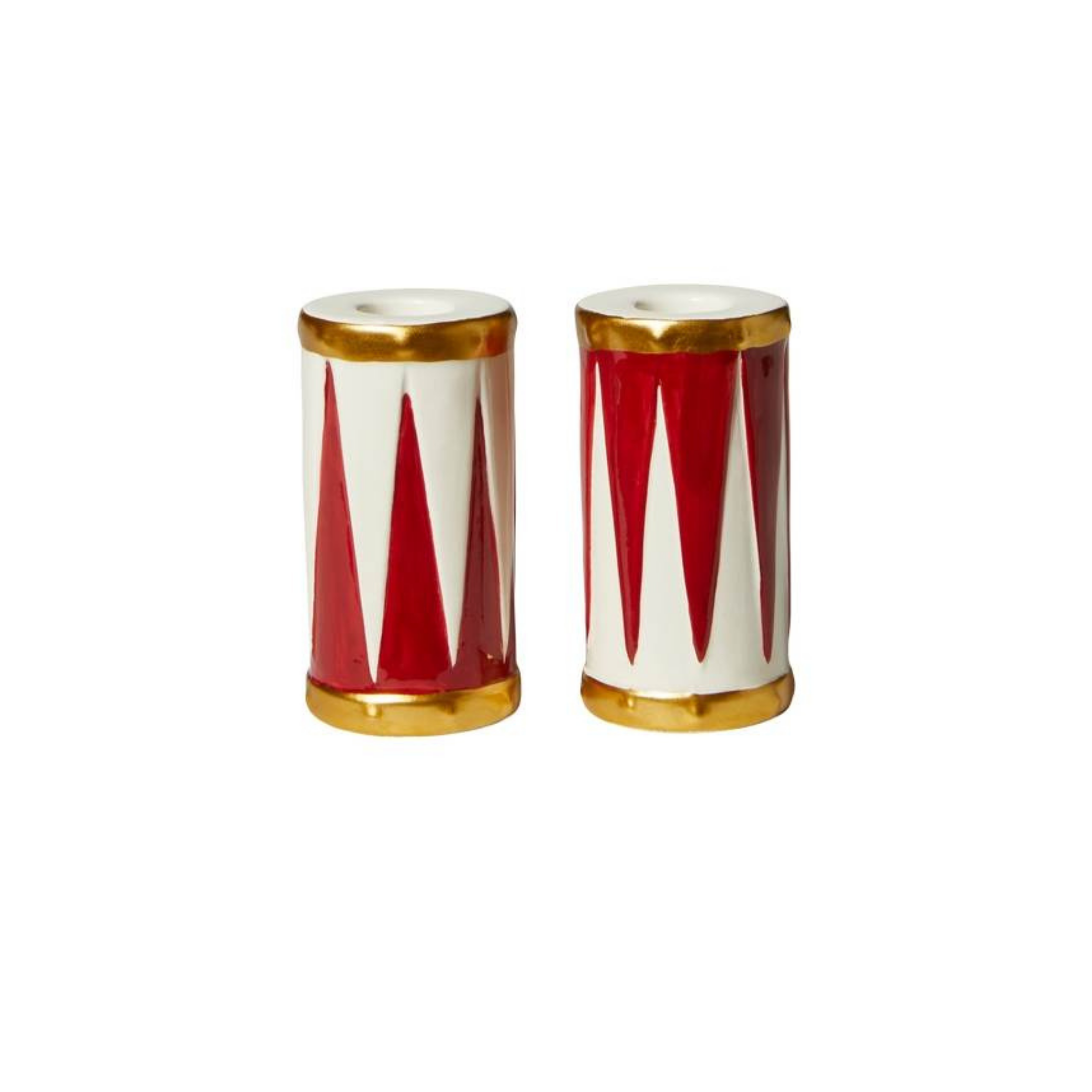 Verleihen Sie Ihrer Einrichtung ein festliches und einzigartiges Detail mit diesem bezaubernden trommelförmigen Vasen-/Kerzenhalter in Rot und Weiß. Das kreative und farbenfrohe Design bringt Leben und Freude in jeden Raum, egal ob Sie es als elegante Vase für Ihre Lieblingsblumen oder als stimmungsvollen Kerzenhalter für Kerzen verwenden.