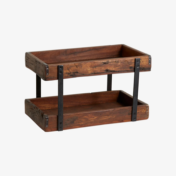 Das BOLDO-Display ist ein einzigartiges, handgefertigtes Produkt aus Altholz aus Indien. Jedes Stück hat seinen eigenen natürlichen Ausdruck mit Rissen, Knoten und Spalten, die Teil des Charmes des Holzes sind – keine Fehler.
