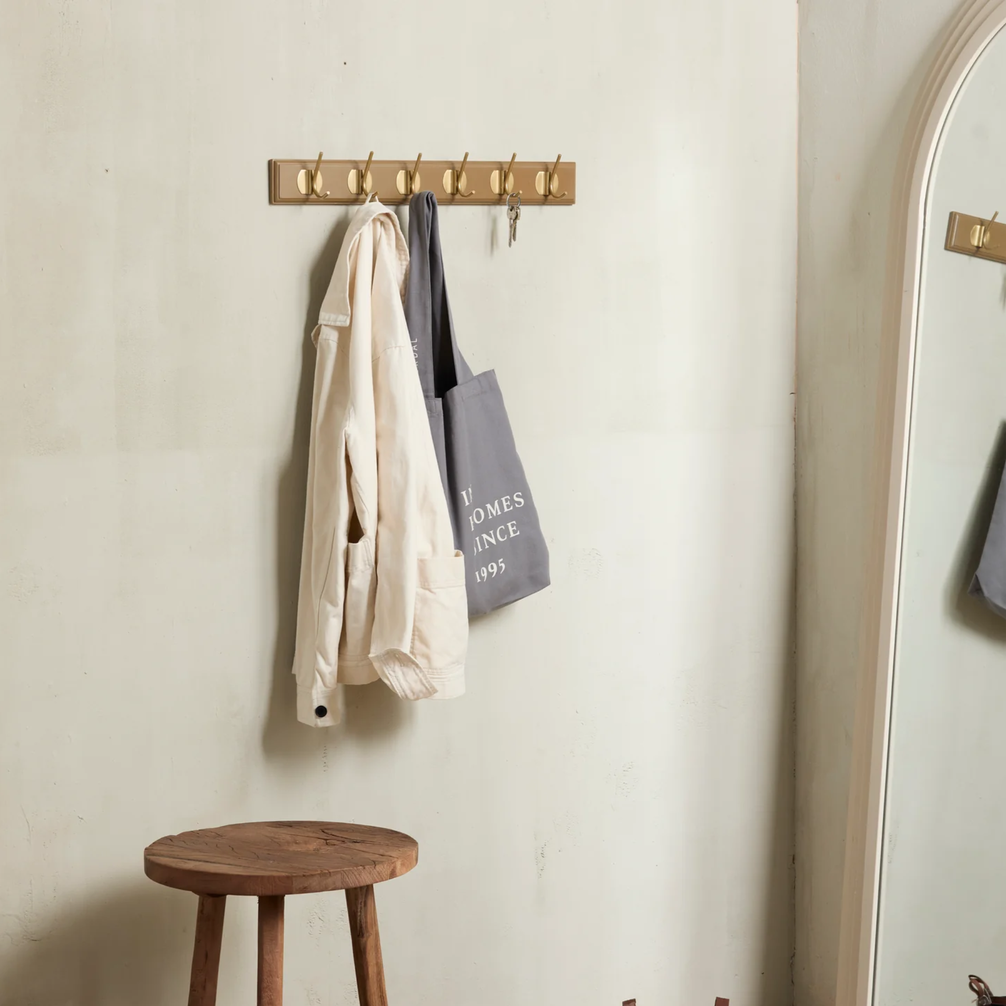 Die markanten Haken bieten reichlich Platz für Jacken, Taschen und Accessoires und setzen gleichzeitig ein grafisches und dekoratives Element an der Wand. Ein schlichtes, praktisches und ästhetisches Design, das Funktion und Form auf wunderbare Weise vereint.