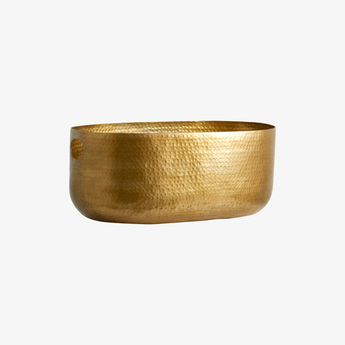 Verleihen Sie Ihrem Zuhause mit dem LAIKA-Korb in elegantem Gold einen Hauch von Exklusivität. Der Korb ist handgefertigt aus gehämmertem Aluminium und hat eine schöne, glänzende Oberfläche, die ihm ein luxuriöses Aussehen verleiht.