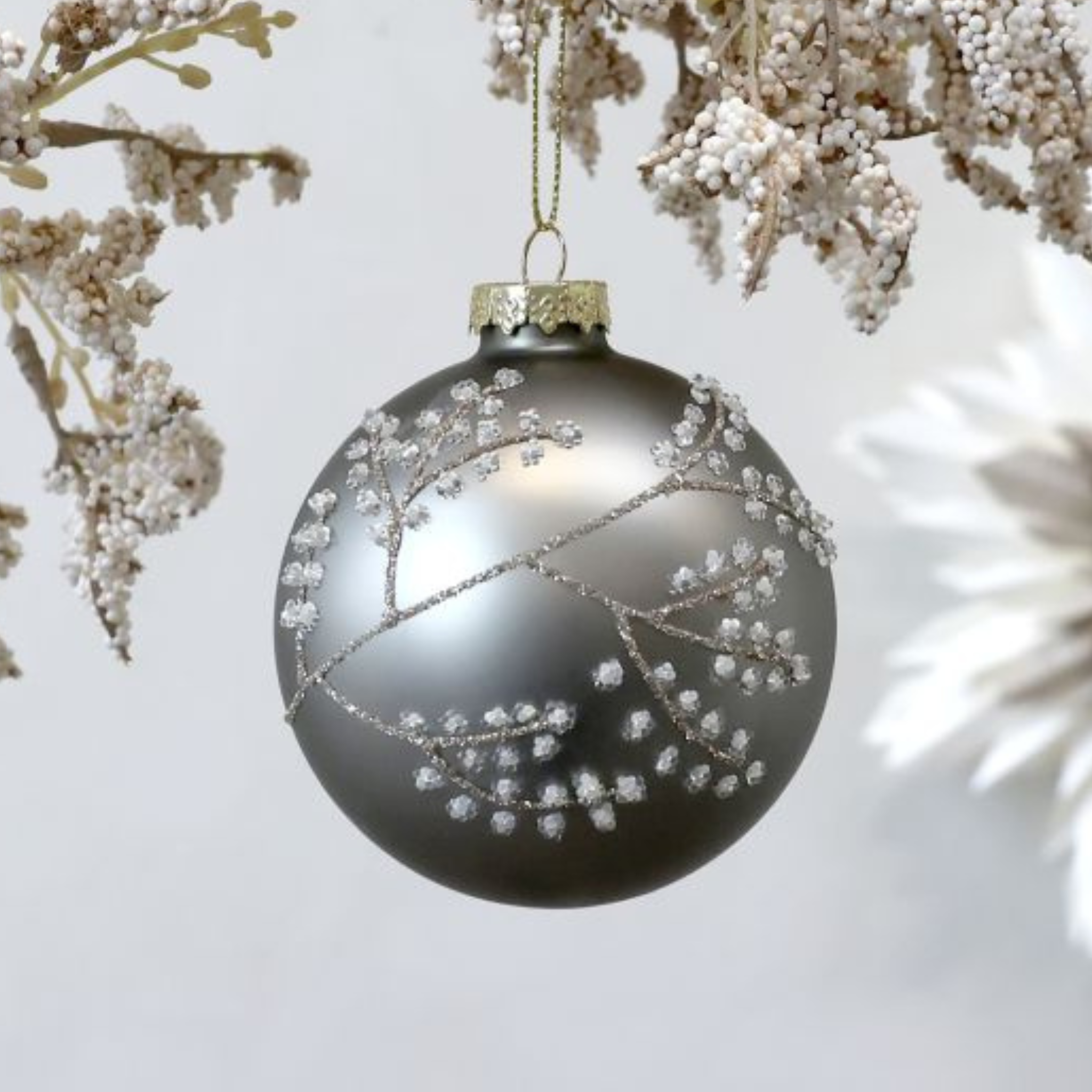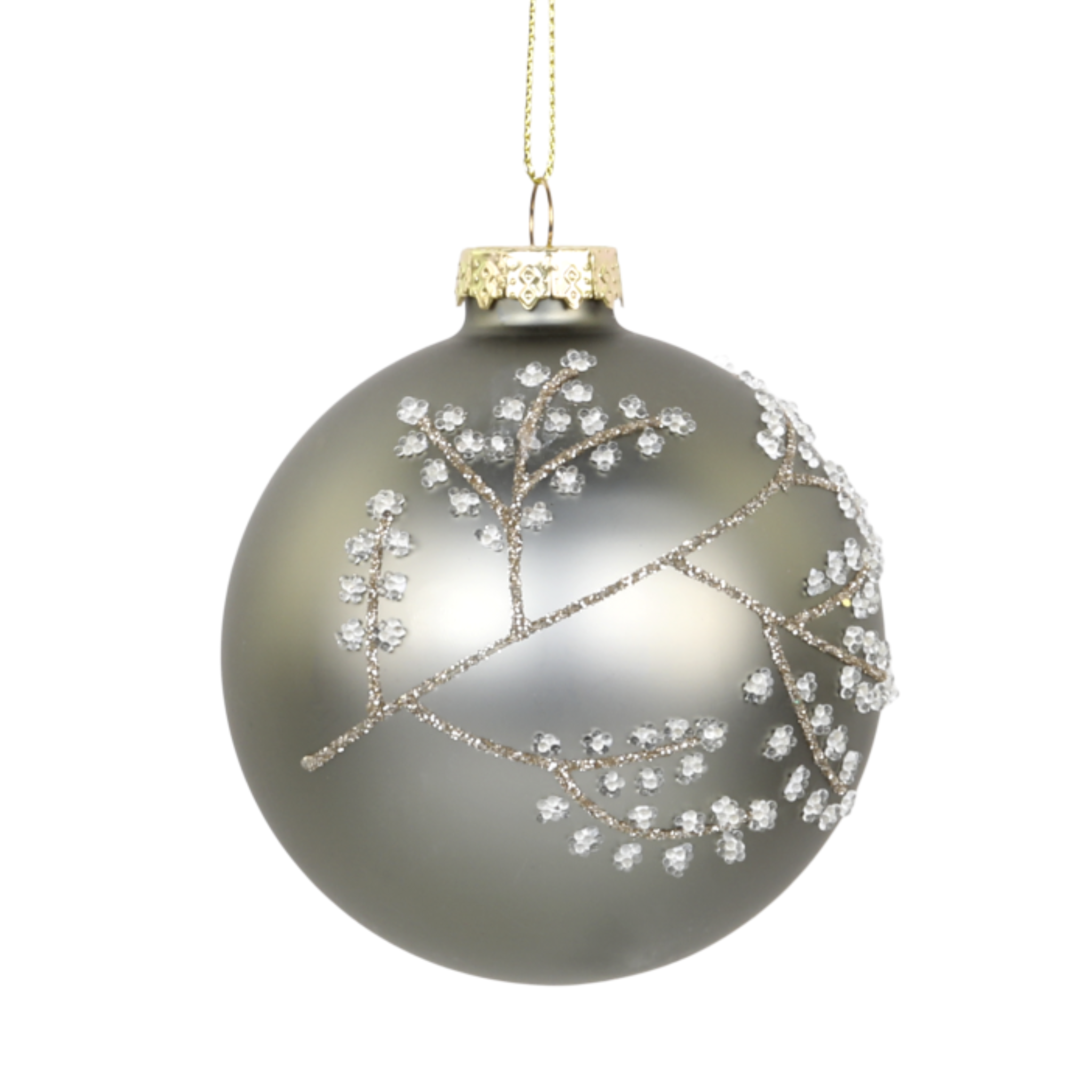 Die tiefgrüne Verte-Farbe sorgt für einen klassischen und luxuriösen Look, während die kleinen Steine einen Hauch von Glamour verleihen, der das Licht einfängt und einen bezaubernden Effekt erzeugt. Die Kugel eignet sich perfekt zum Aufhängen am Baum, im Fenster oder als Teil einer schönen Weihnachtsdekoration.