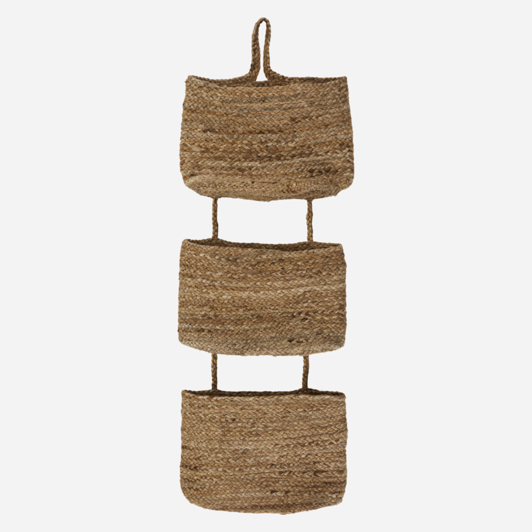 Bringen Sie mit diesem praktischen und dekorativen Korbtrio von House Doctor Ordnung in Ihre Aufbewahrung. Dieses Korbtrio besteht aus drei miteinander verbundenen Körben aus natürlichem Hanf, die Ihrem Interieur einen entspannten und organischen Look verleihen.