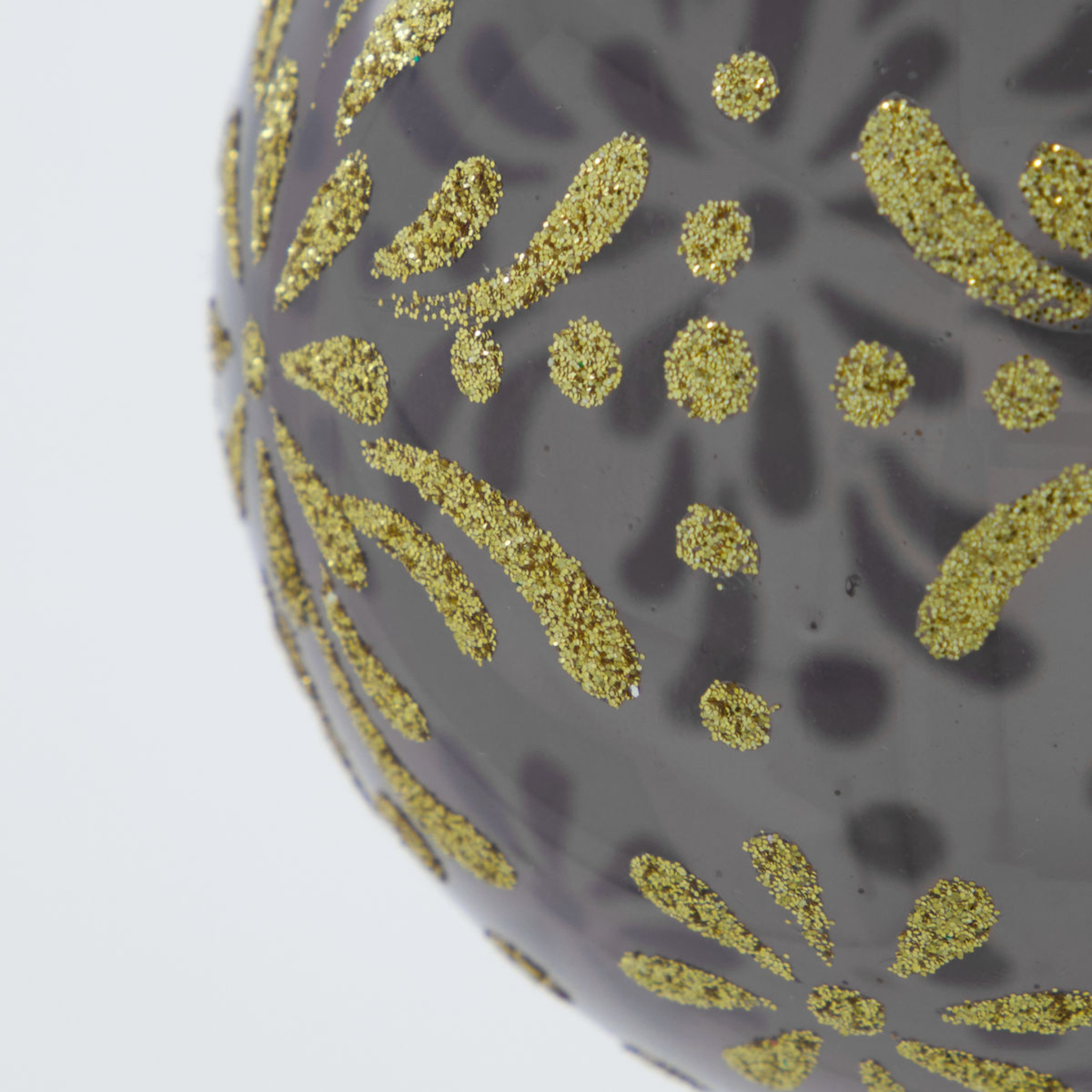 Seine graue Farbe und das goldene Glitzermuster schaffen eine festliche Atmosphäre, wenn es am Weihnachtsbaum hängt oder Ihren Tisch auf einer Platte dekoriert. Aufgrund der vielseitigen Farben eignen sich die Weihnachtskugeln sowohl für Braun, Dunkelblau, Gold als auch Glitzer.
