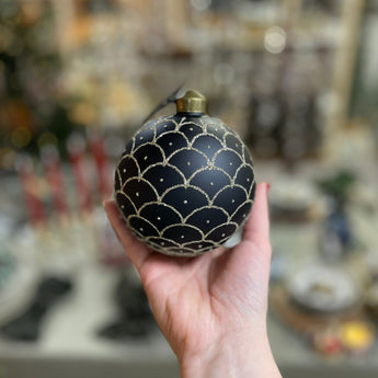 Ein klassisches silbernes Glitzermuster rundet das Design ab und macht es passend zu jedem Thema, das Sie dieses Jahr im Sinn haben. Retro, minimalistisch oder bunt? Sie können tun und lassen, was Sie wollen. Kombinieren Sie die handgefertigten Weihnachtskugeln mit Silber und Schwarz für ein nostalgisches Gefühl oder kombinieren Sie sie mit einer beliebigen Farbe für einen individuellen Look.