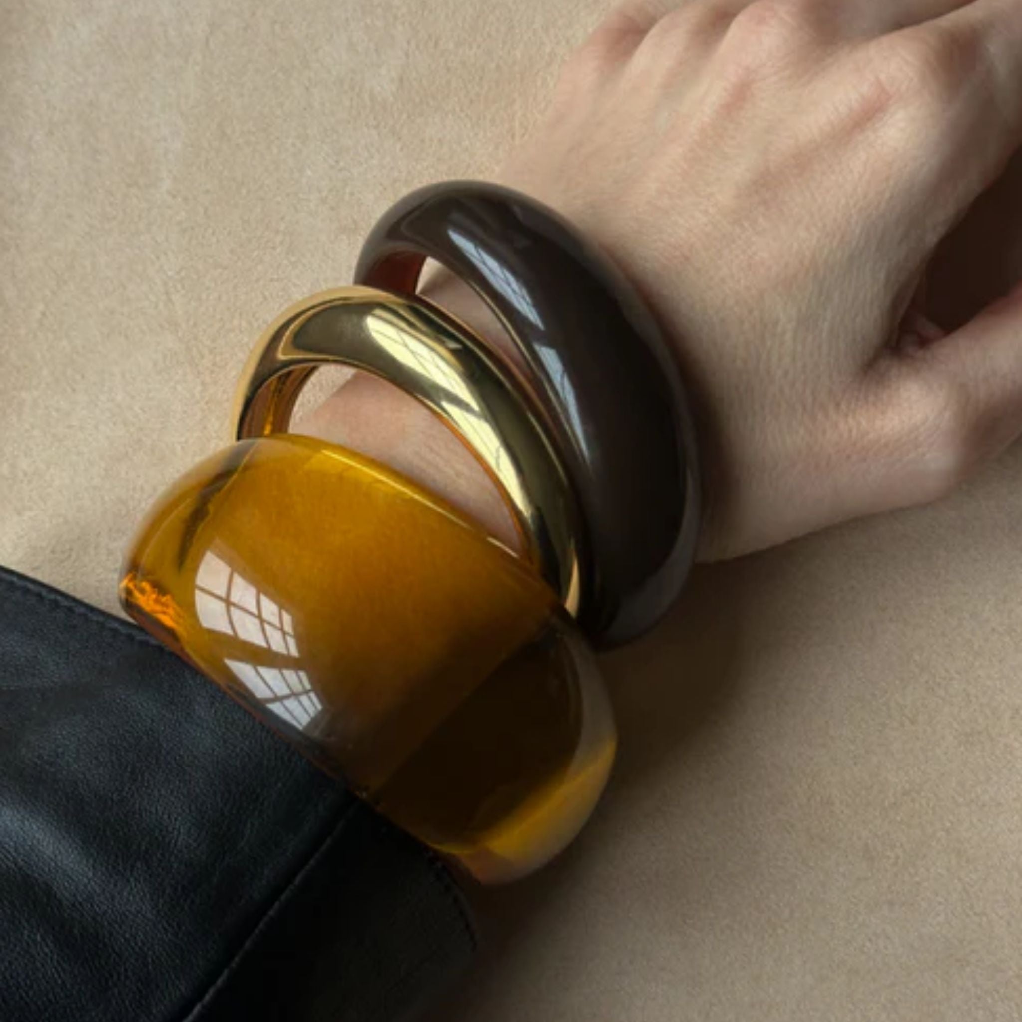 Verleihen Sie Ihrem Look mit diesen Harzarmbändern von Pico Copenhagen einen Hauch Retro-Charme. Die Armbänder lassen sich mit unseren anderen klobigen Armbändern kombinieren.
