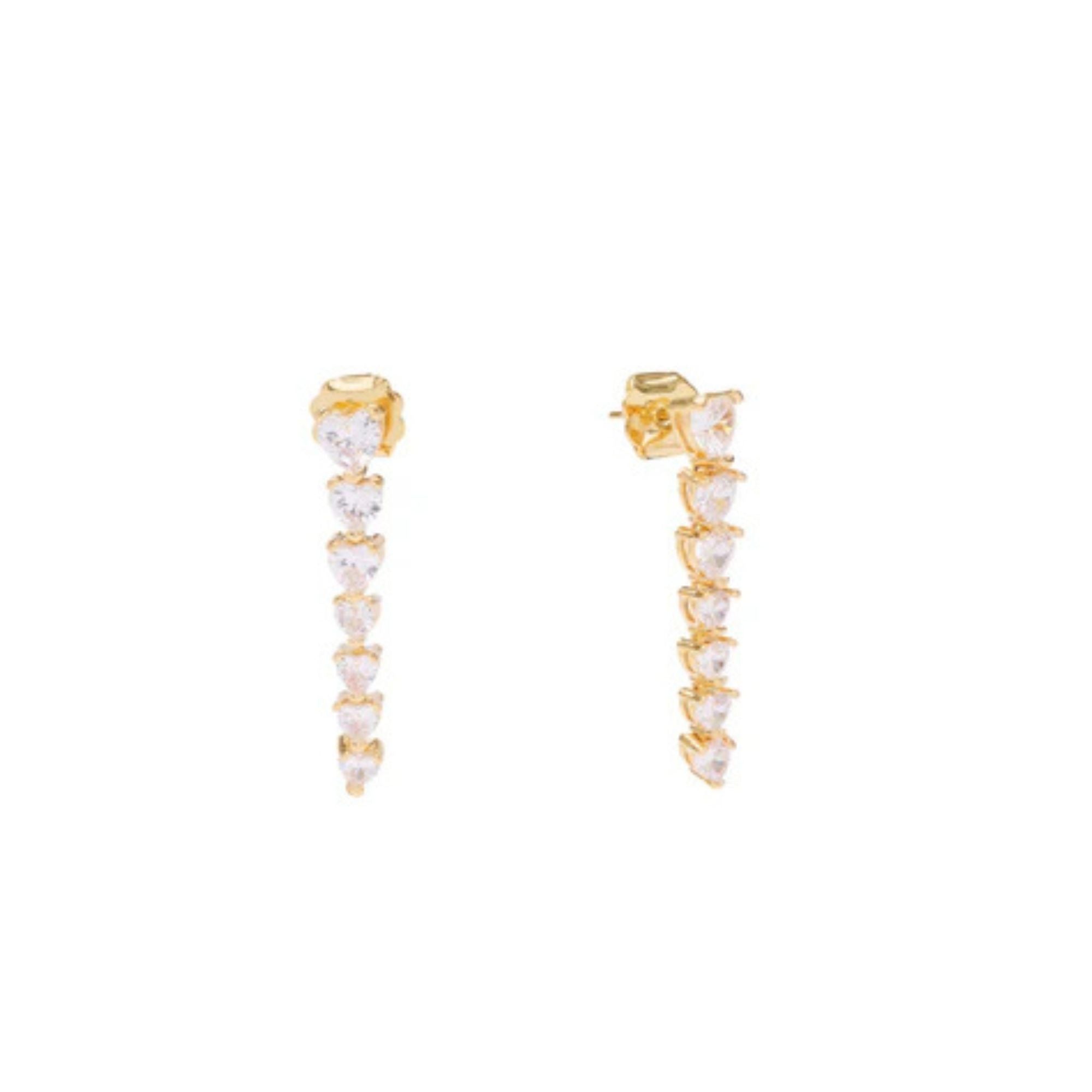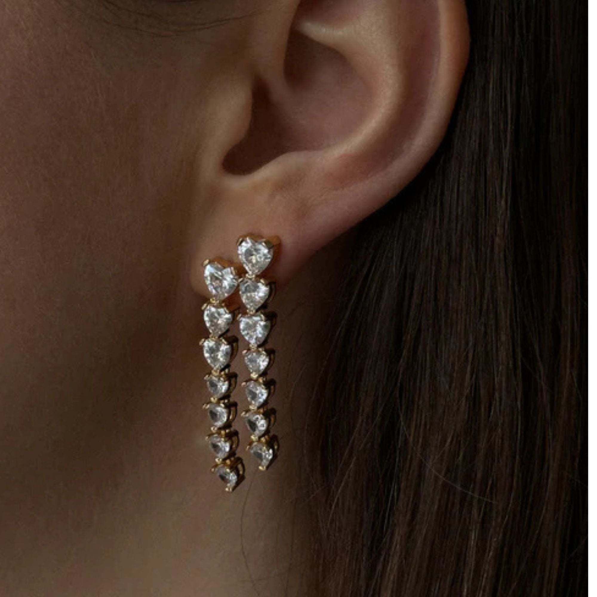 Fantastische lange Ohrringe mit herzförmigen Kristallen von Pico Copenhagen. Perfekt für festliche Anlässe, bei denen Sie mit etwas Bling-Bling beeindrucken möchten. Besonders schön für eine Hochzeit, Konfirmation oder Gala.