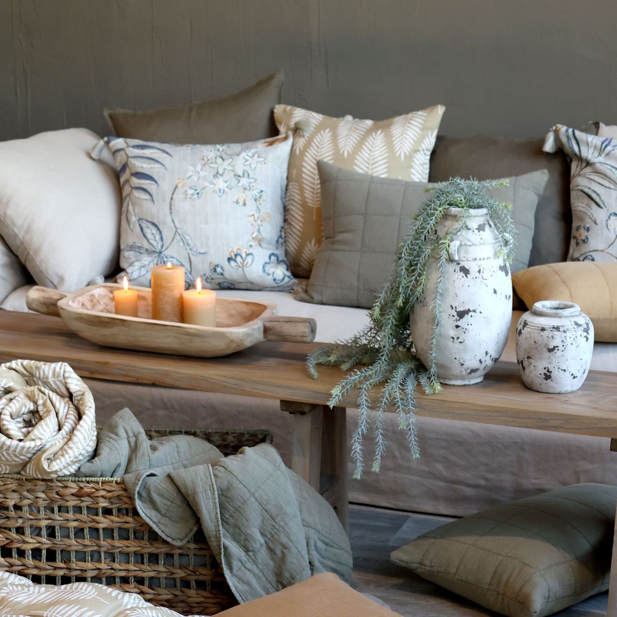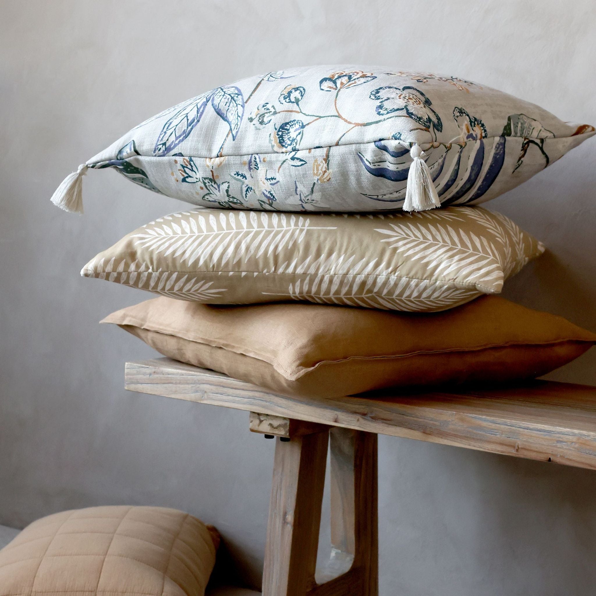 Schaffen Sie mit dem Dekokissen Aix eine gemütliche und persönliche Atmosphäre in Ihrem Zuhause. Das zarte Blumenmuster sorgt für einen frischen und lebendigen Ausdruck, während die dekorativen Quasten in den Ecken Charme und Charakter verleihen. Das Kissen ist in verschiedenen Varianten erhältlich, sodass Sie leicht eines finden, das zu Ihrem Stil passt – egal, ob Sie ruhige Farbtöne oder farbenfrohe Muster bevorzugen. Perfekt für Sofa, Bett oder Lieblingssessel, wenn Sie Ihrem Interieur einen sanften und stilvollen Touch verleihen möchten.