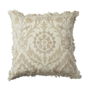 Schönes und gemütliches Dekokissen. Das Kissen hat ein romantisches Muster und Fransen am Rand.