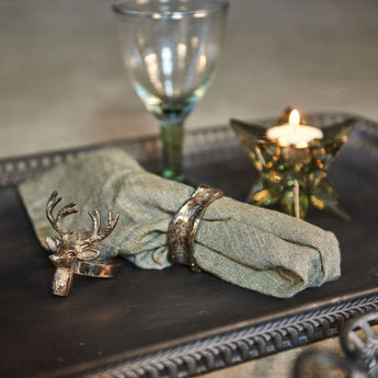 Der Serviettenring in Antikgold mit Hirschmotiv ist perfekt für Ihre Weihnachtstafel. Das elegante Detail sorgt für Wärme und Glanz und verleiht Ihrem Abendessen eine festliche und stimmungsvolle Ausstrahlung, die den Zauber von Weihnachten unterstreicht.