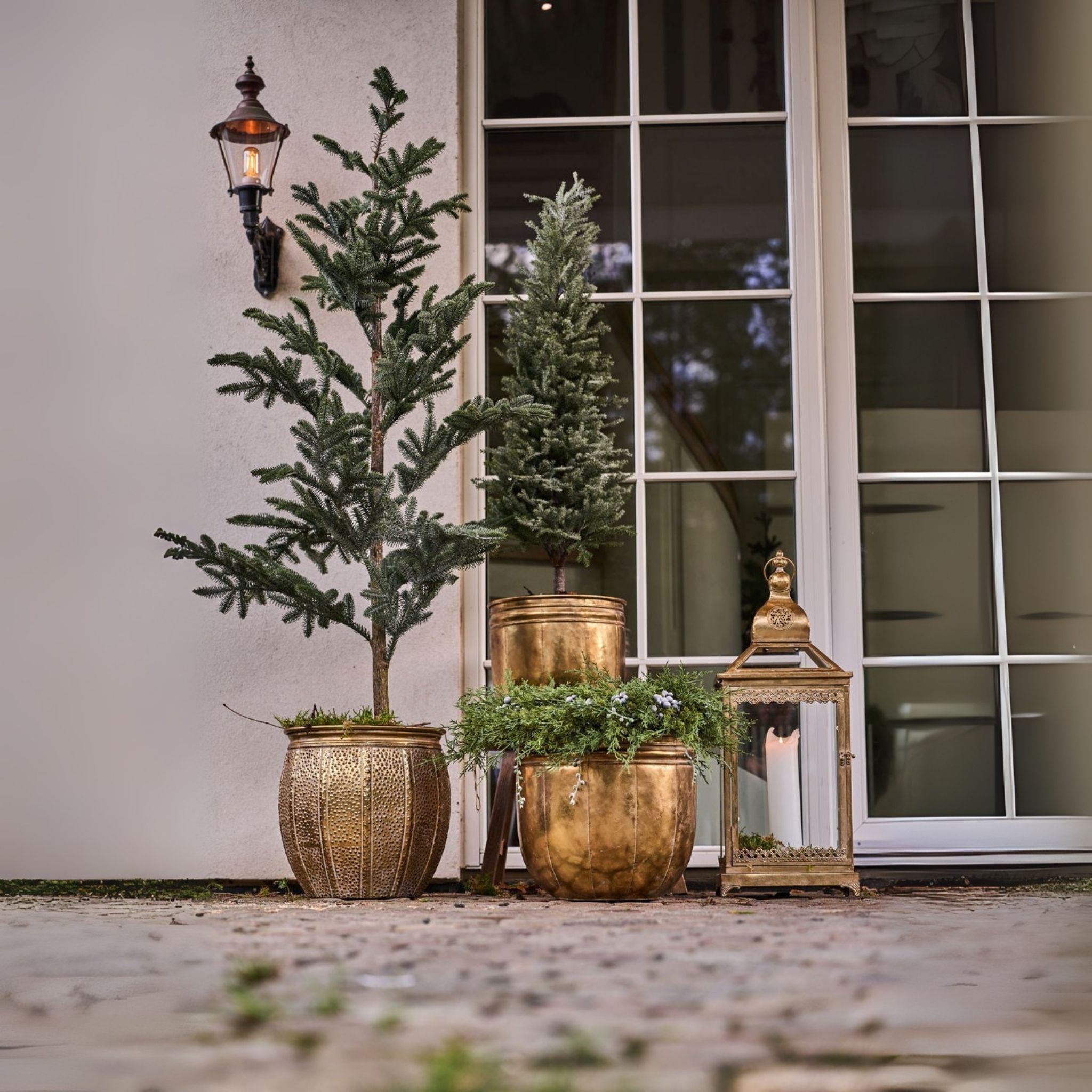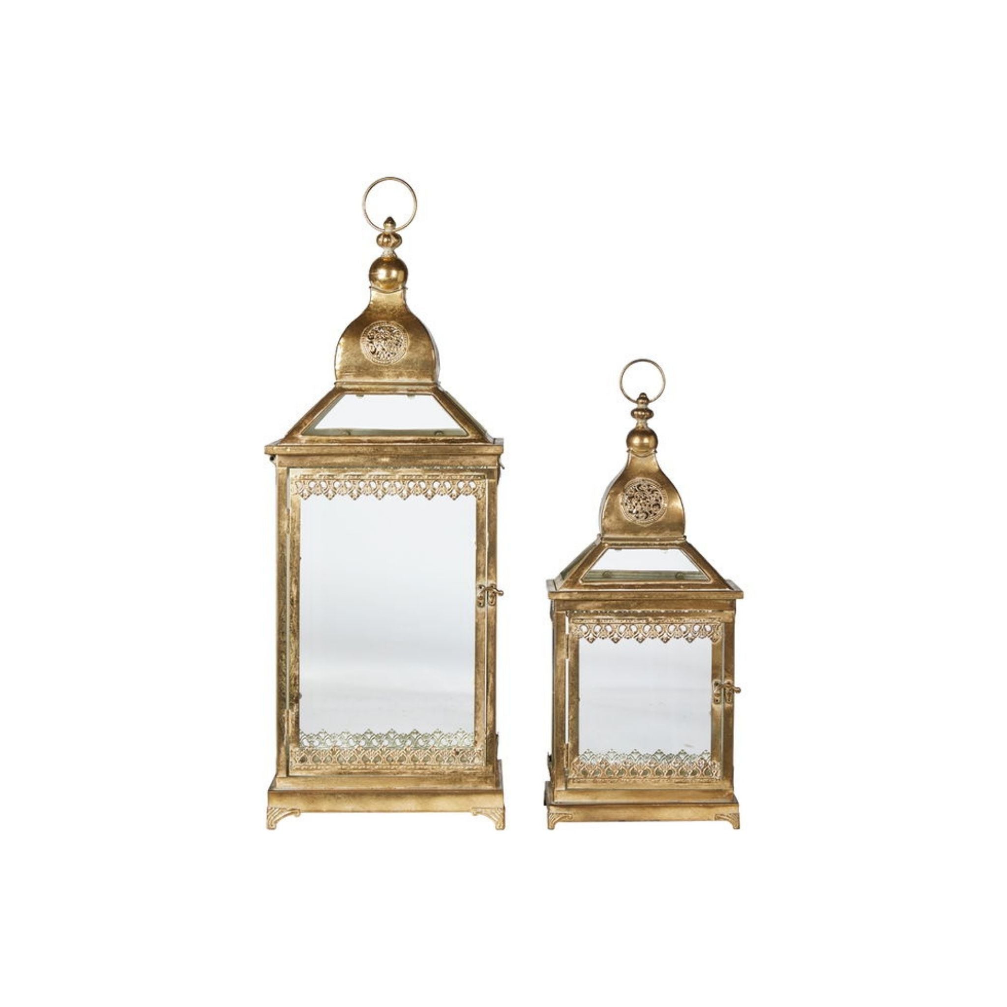 Bringen Sie Wärme und Gemütlichkeit in Ihr Zuhause oder auf die Terrasse mit diesem eleganten Laternenset in Antikgold.