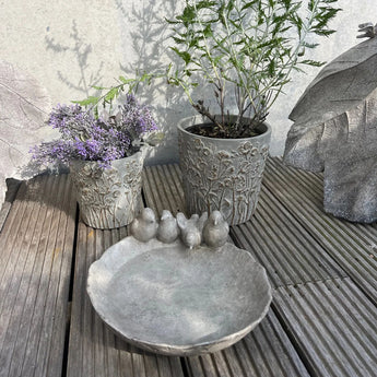 Dieses schöne Vogelbad von LaVida besteht aus strapazierfähigem Polyresin und ist mit vier hübschen Vögeln verziert, die für eine lebendige und natürliche Note sorgen.