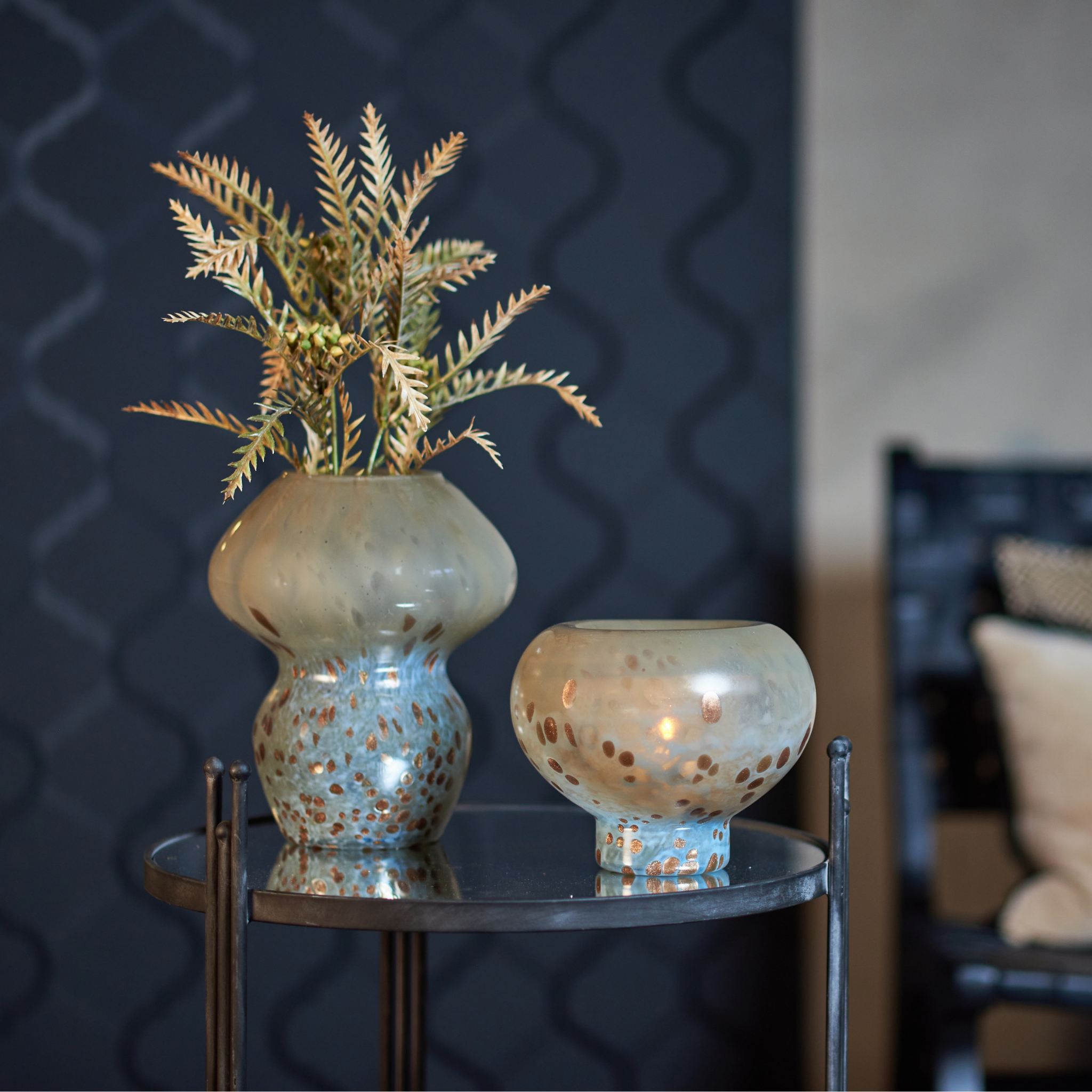 Verwandeln Sie Ihr Zuhause mit dieser eleganten Vase in der Farbe Grau/Cropper aus hochwertigem Glas. Mit ihrem modernen und stilvollen Design verleiht die Vase jeder Einrichtung eine edle Note. Die graue Farbe sorgt für einen neutralen Hintergrund, der Blumen und Zweige auf die schönste Weise hervorhebt, unabhängig davon, ob Sie ihn für frische Blumen oder als Dekorationsobjekt verwenden.