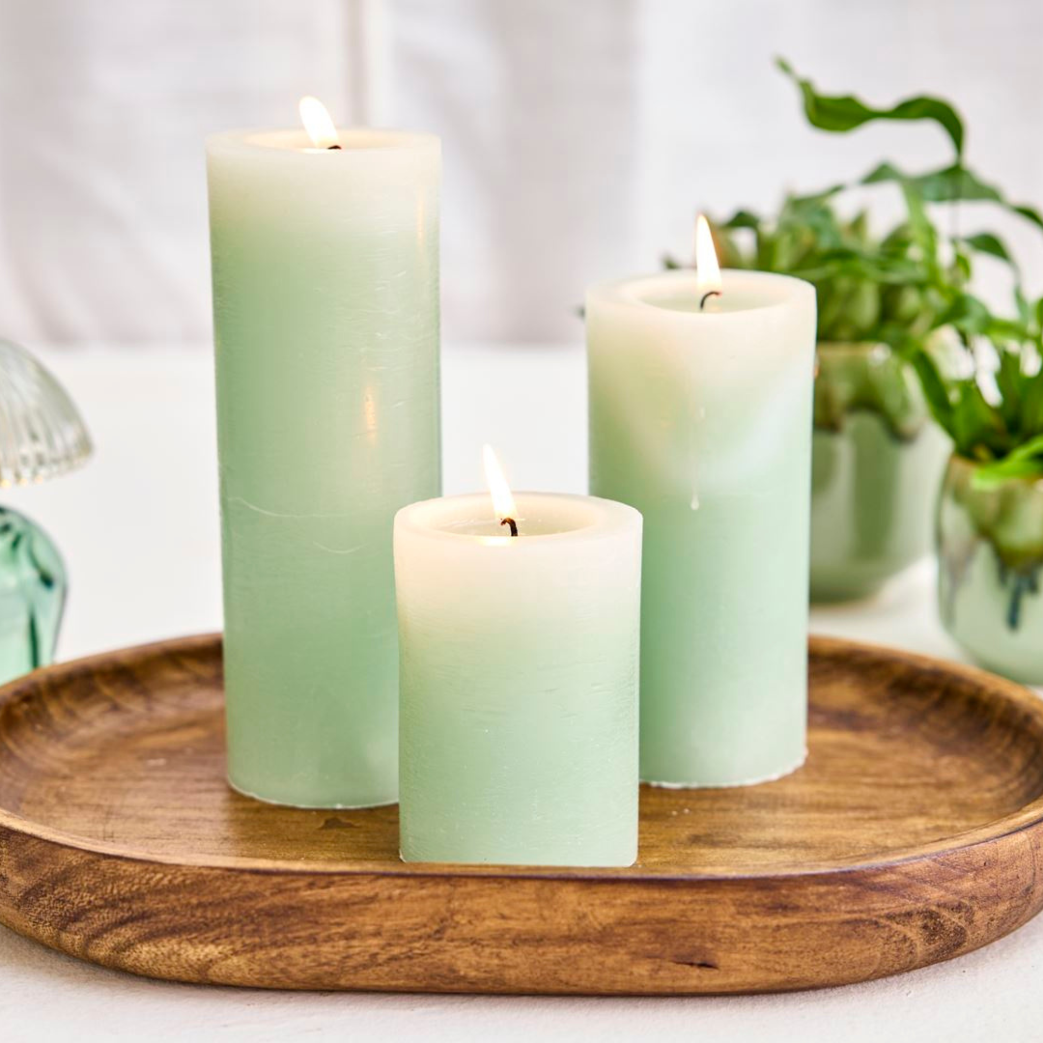 Bloklys Rustik Ø7 cm - Jade grøn - Flere størrelser