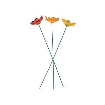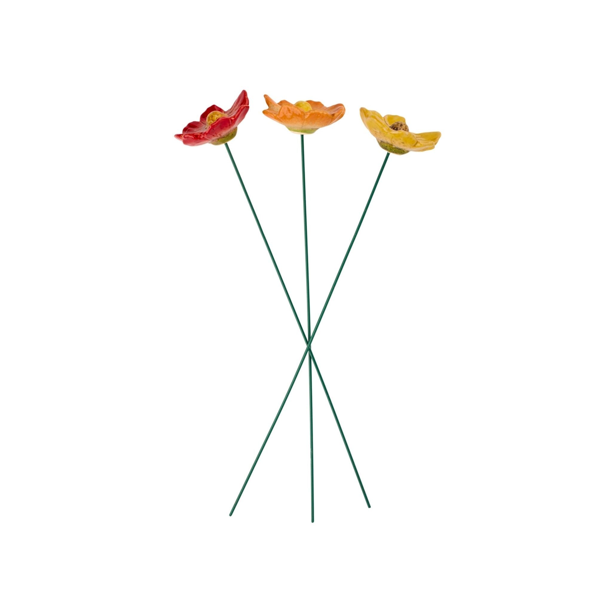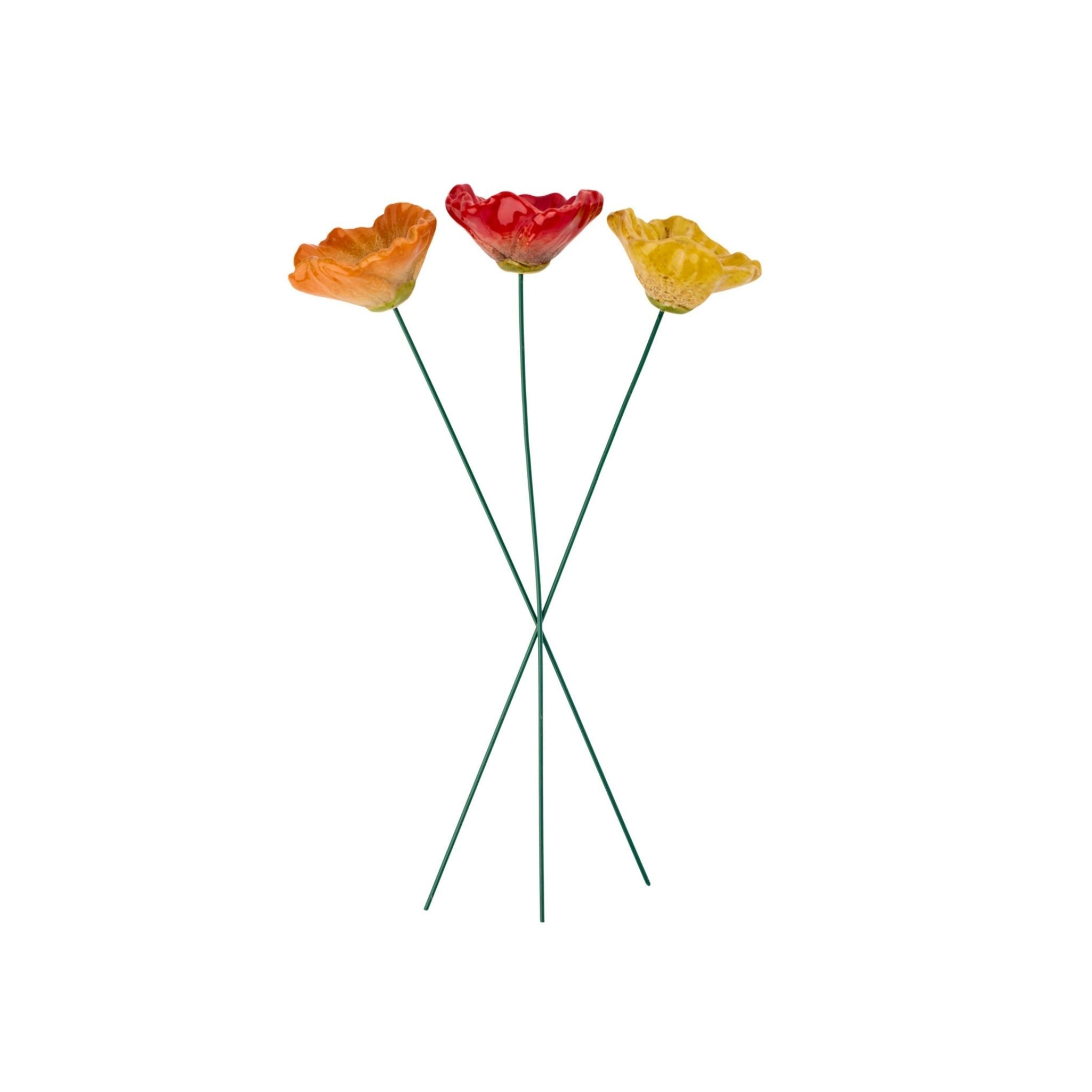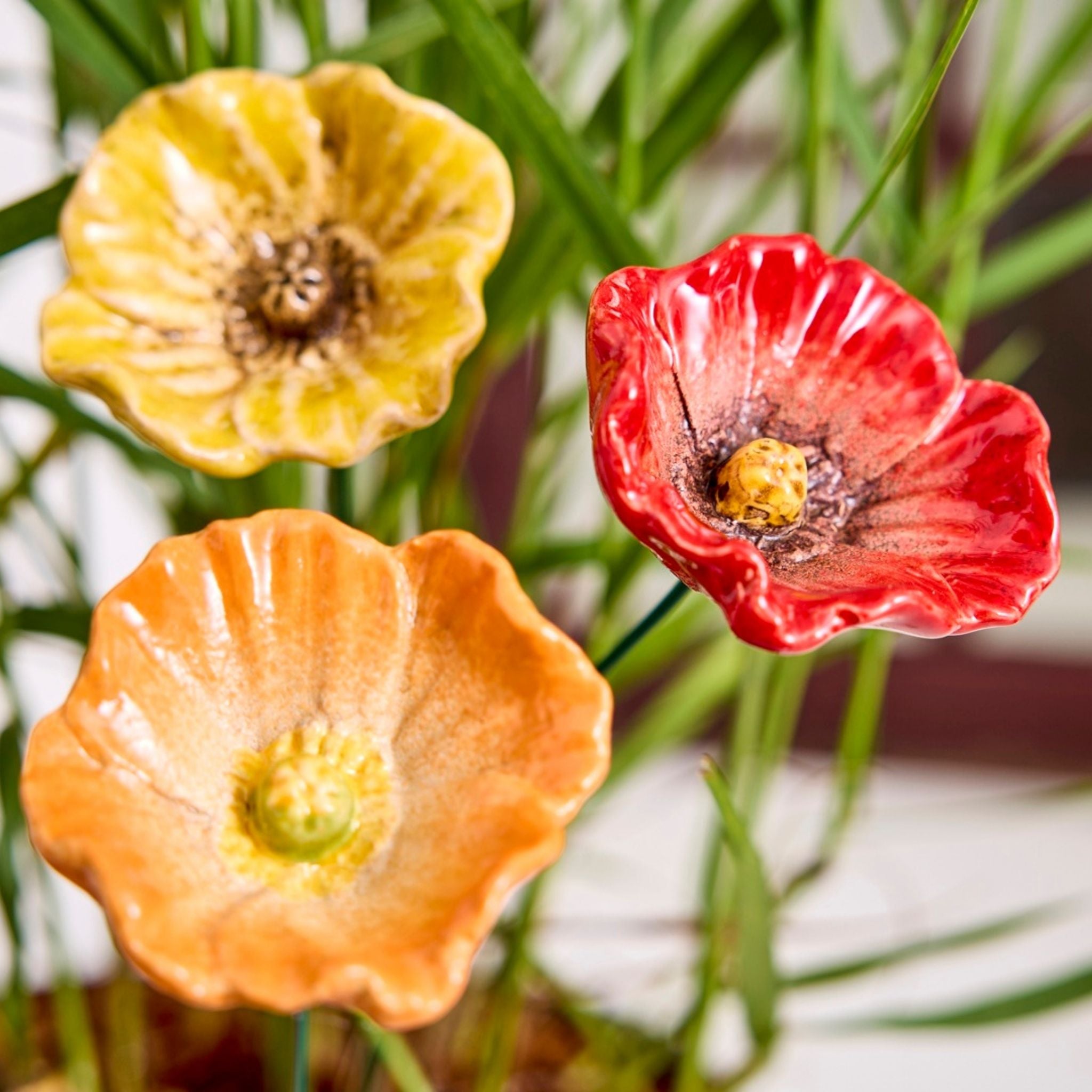 En dekorativ keramikblomst på stilk, der fås i to størrelser og tilfører farve og personlighed til både krukker og bede.