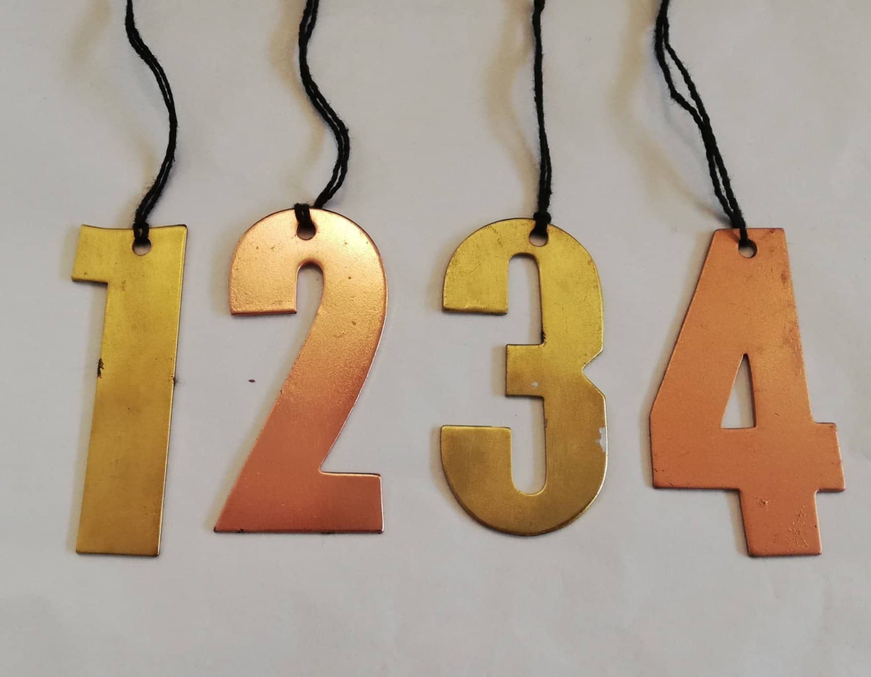 Wunderschöne rustikale Adventszahlen von Bloomingville aus kupfer- und messingfarbenem Metall. Beachten Sie, dass die meisten Beutel so gemischt sind, dass die Zahlen gemischt sind