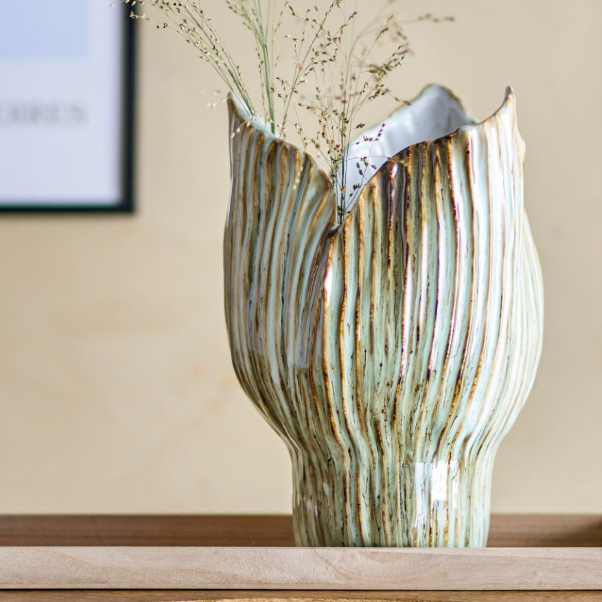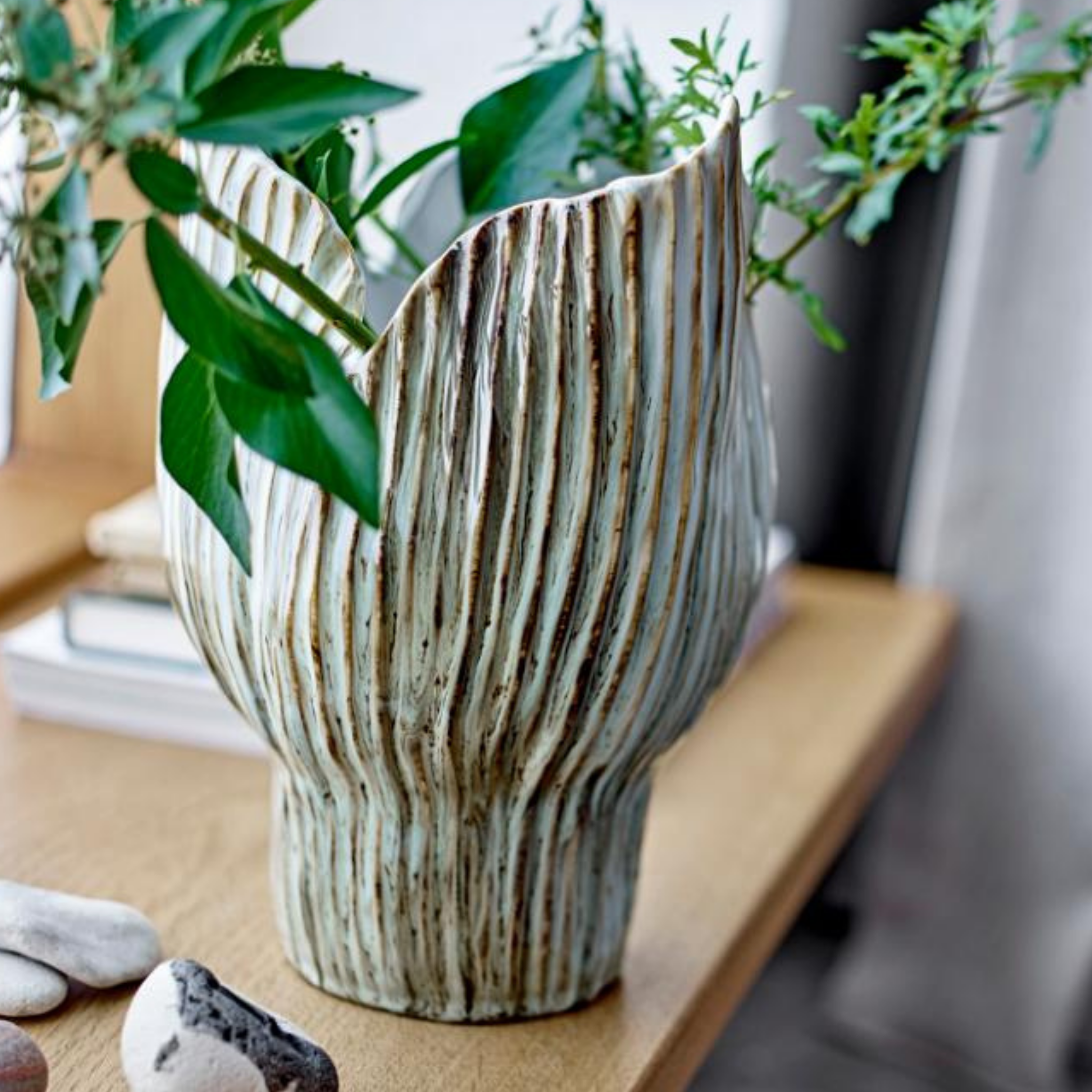 Die Mahira Vase von Bloomingville ist eine Hommage an die Schönheit und Vielfalt der Natur. Inspiriert von den fantastischen Formen und Schattierungen der Natur, erscheint jede Vase als einzigartiges Kunstwerk, das Ihr Zuhause mit seinem besonderen Charme bereichert.