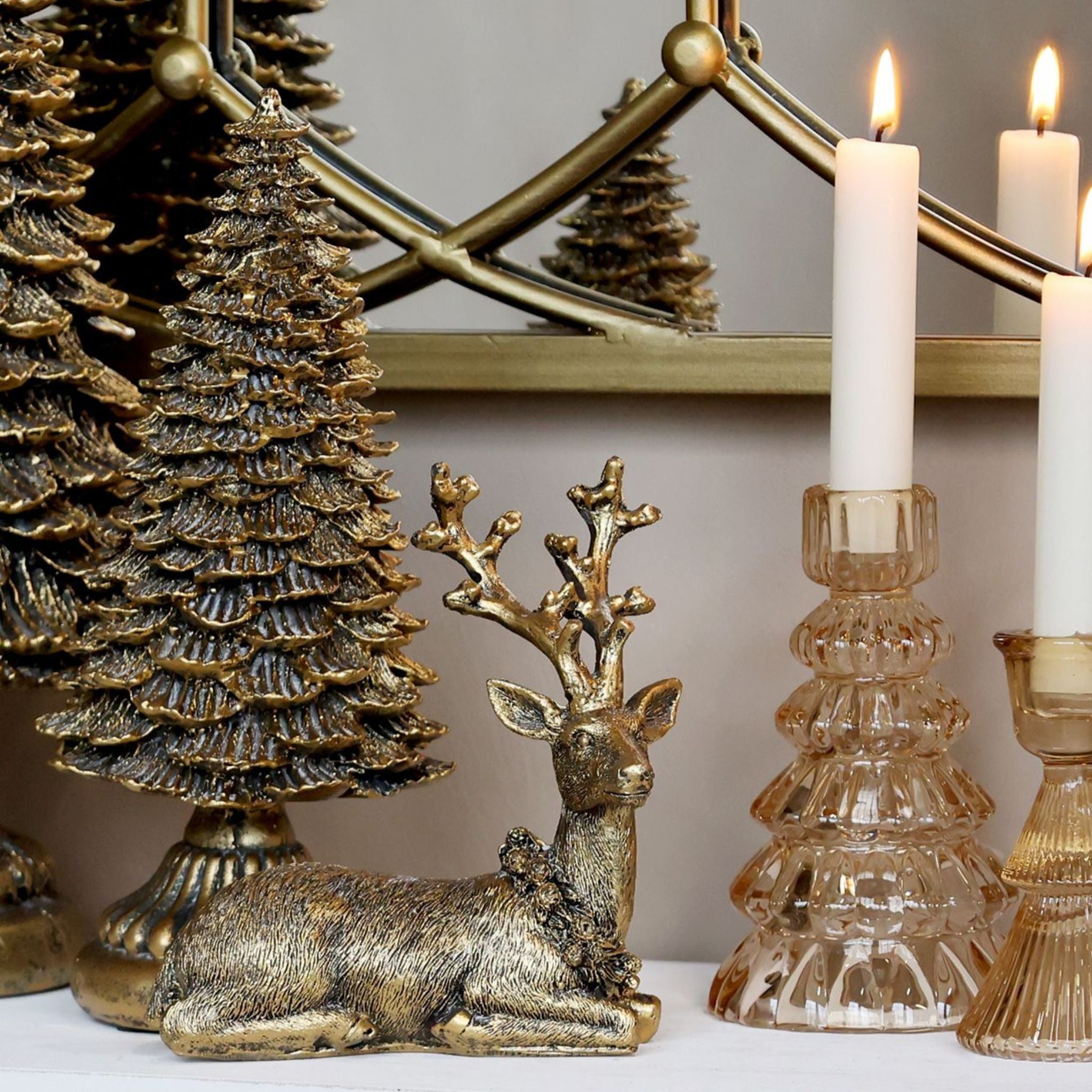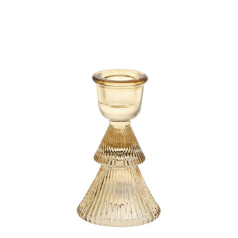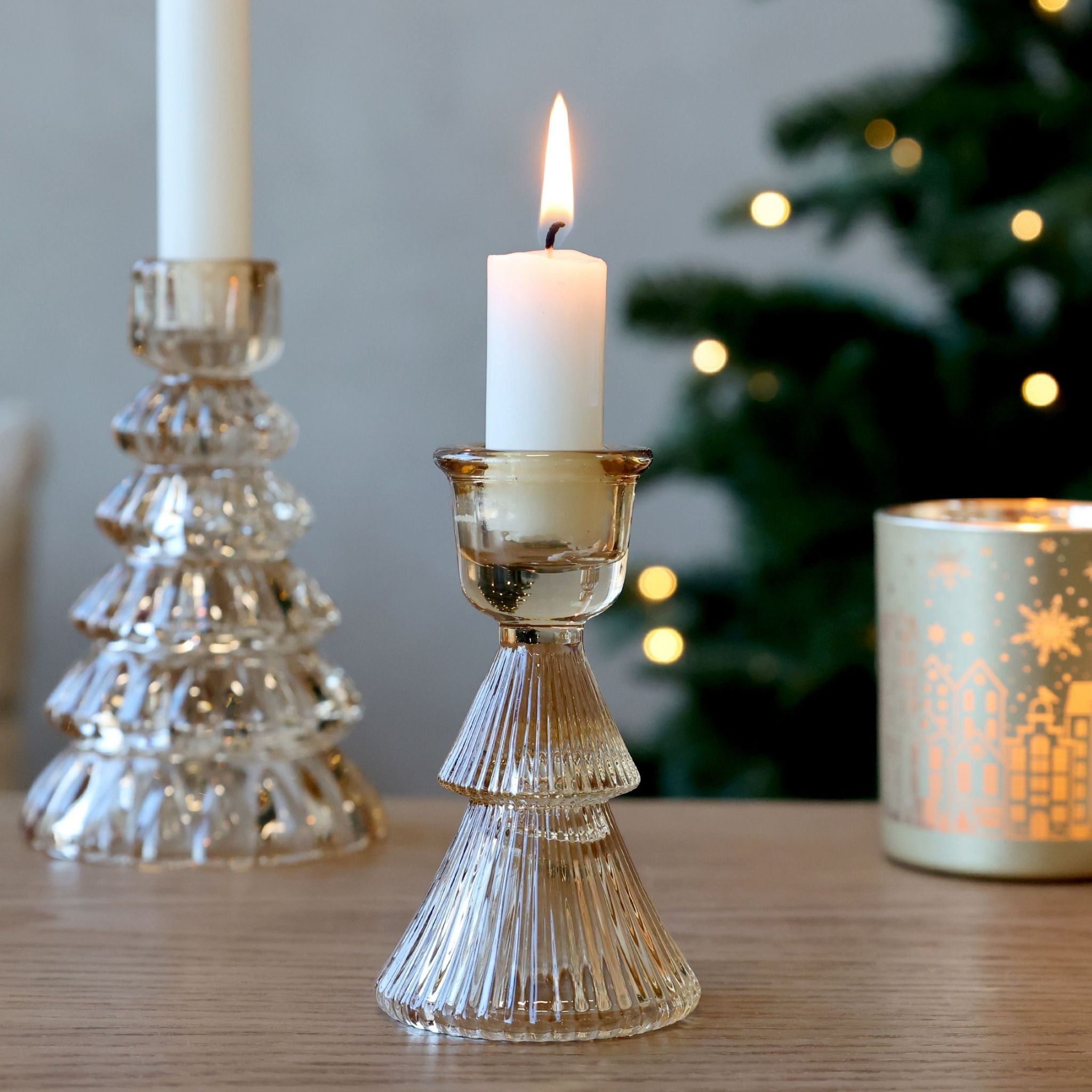 Bringen Sie Weihnachtsstimmung in Ihr Zuhause mit diesen eleganten Kerzenständern in Form von edlen Weihnachtsbäumen. Die Kerzenhalter sind in einer wunderschönen Bernsteinfarbe erhältlich, die Ihrer Einrichtung einen goldenen Glanz und Charme verleiht.
