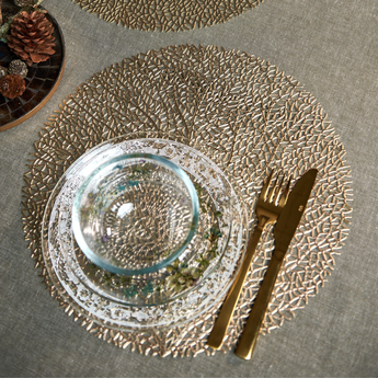 Wunderschönes und elegantes Tischset mit Goldoptik von Speedtsberg.