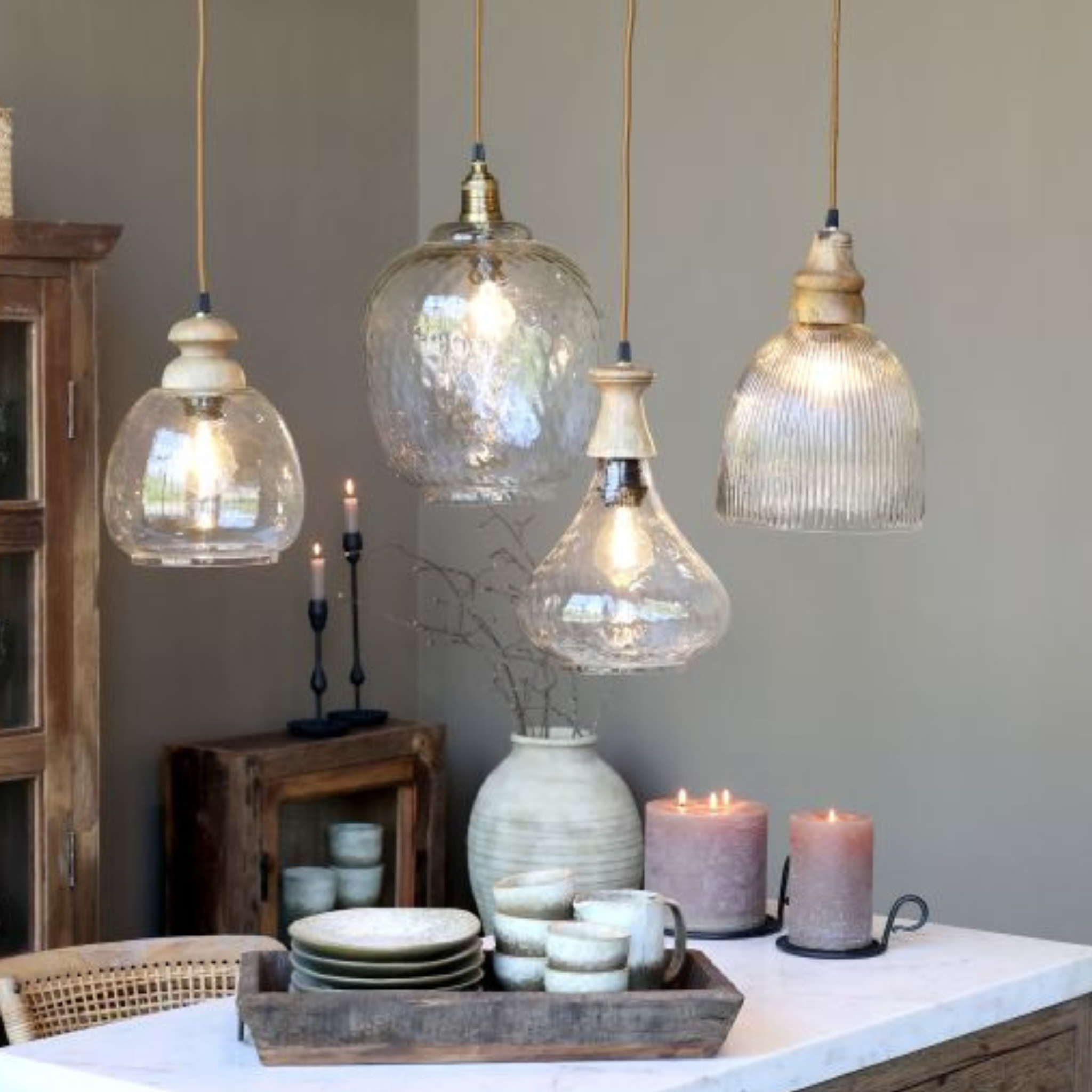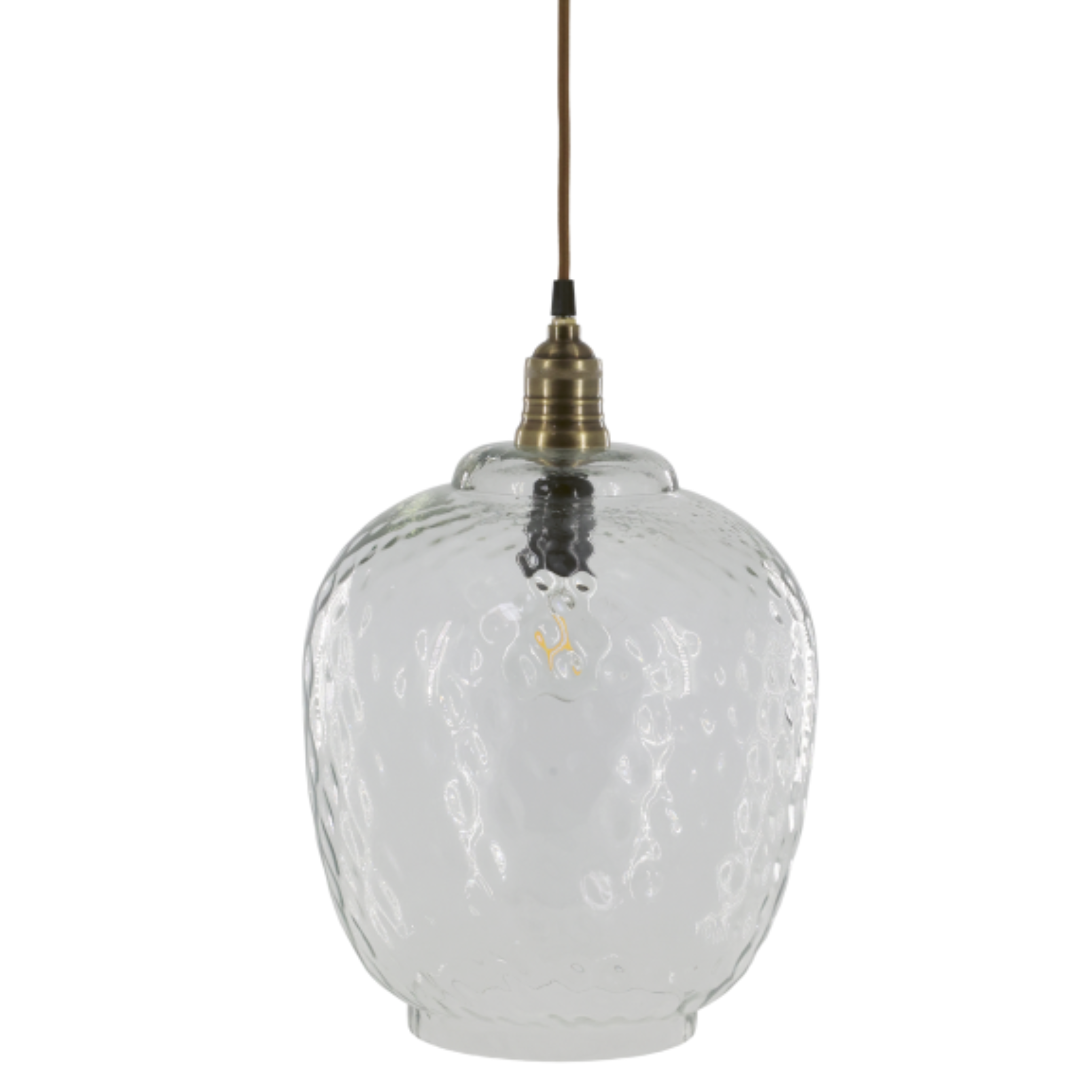 Glas loftlampe med messingtop H39 cm - Chic Antique