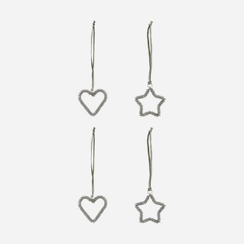 Hæng disse skønne og hyggelige ornamenter i hjerte- eller stjerneform på juletræet, eller læg dem sammen med mos, kogler, lys og kugler i en dekoration.