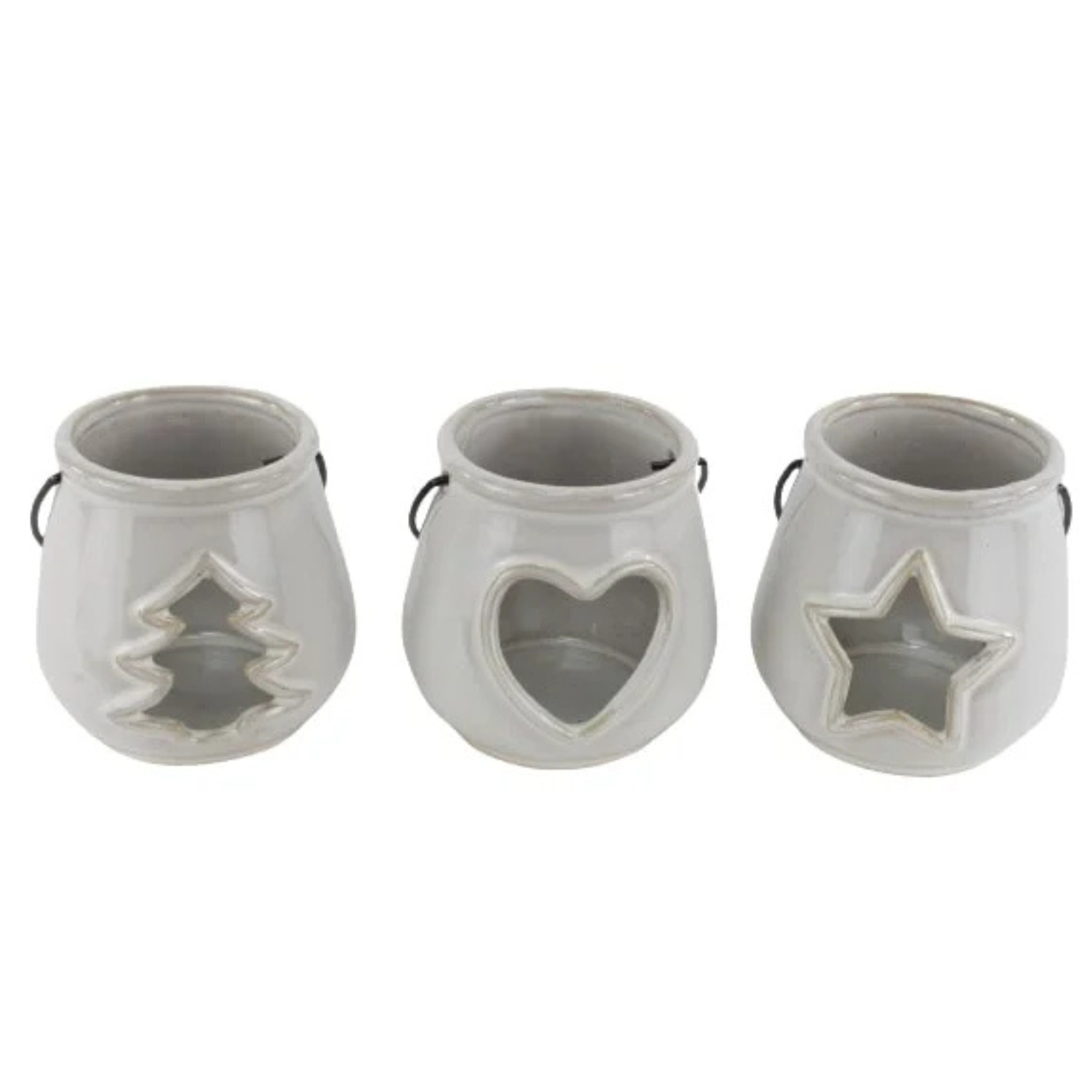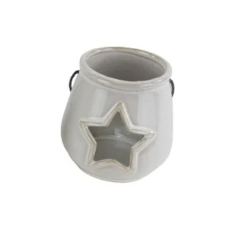 Søde og hyggelige keramik lanterner med håndtag i hvid.