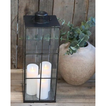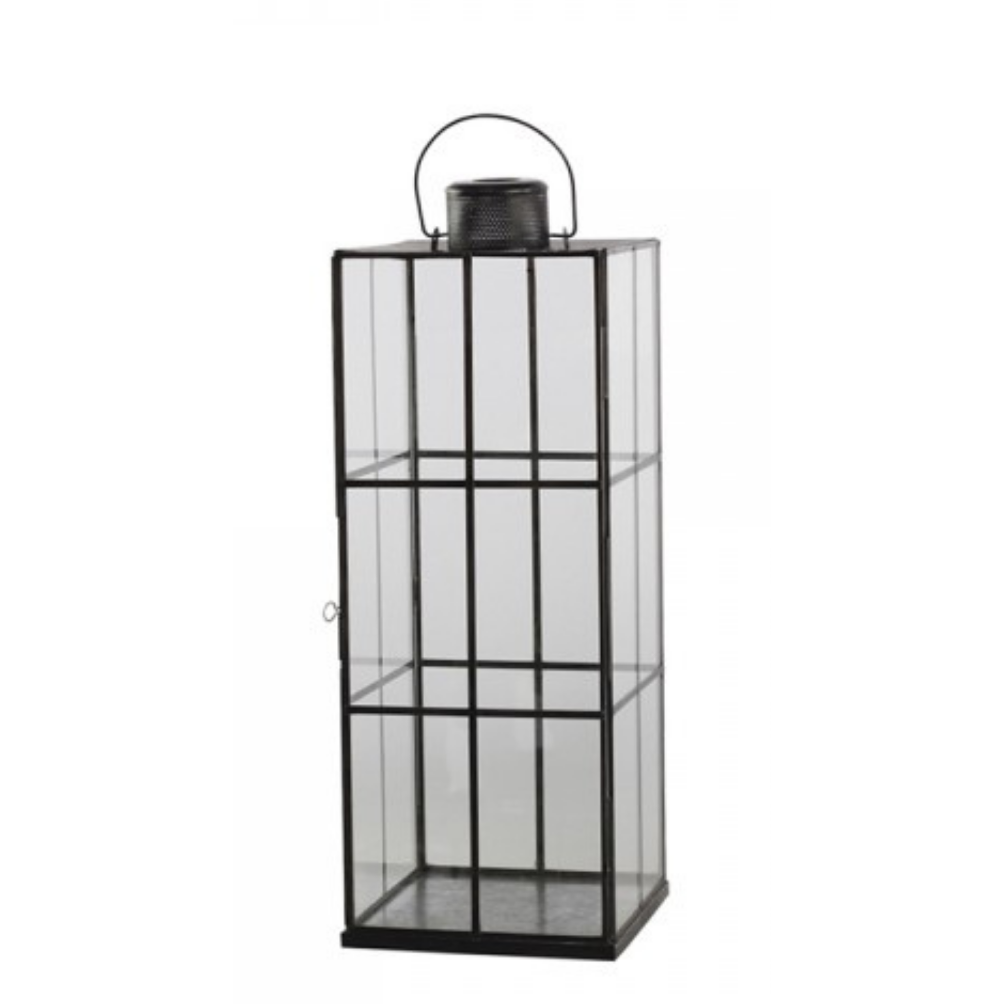 Die Laterne ist quadratisch und verfügt über ein Gitter für das Glas. Die Laterne kann sowohl im Innen- als auch im Außenbereich verwendet werden, wir empfehlen jedoch nicht, sie dauerhaft im Freien stehen zu lassen, da sie rosten kann.