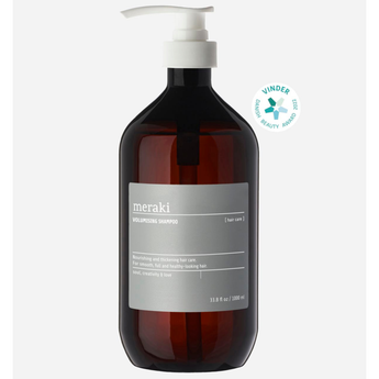 Gönnen Sie Ihrem feinen und dünnen Haar mit diesem pflegenden Volumenshampoo von Meraki einen Boost mit viel Volumen. Provitamin B5 sorgt für zusätzliche Pflege, während Erbsenprotein einen Film auf jede Strähne legt und Ihr Haar voller, glatter und seidiger macht.