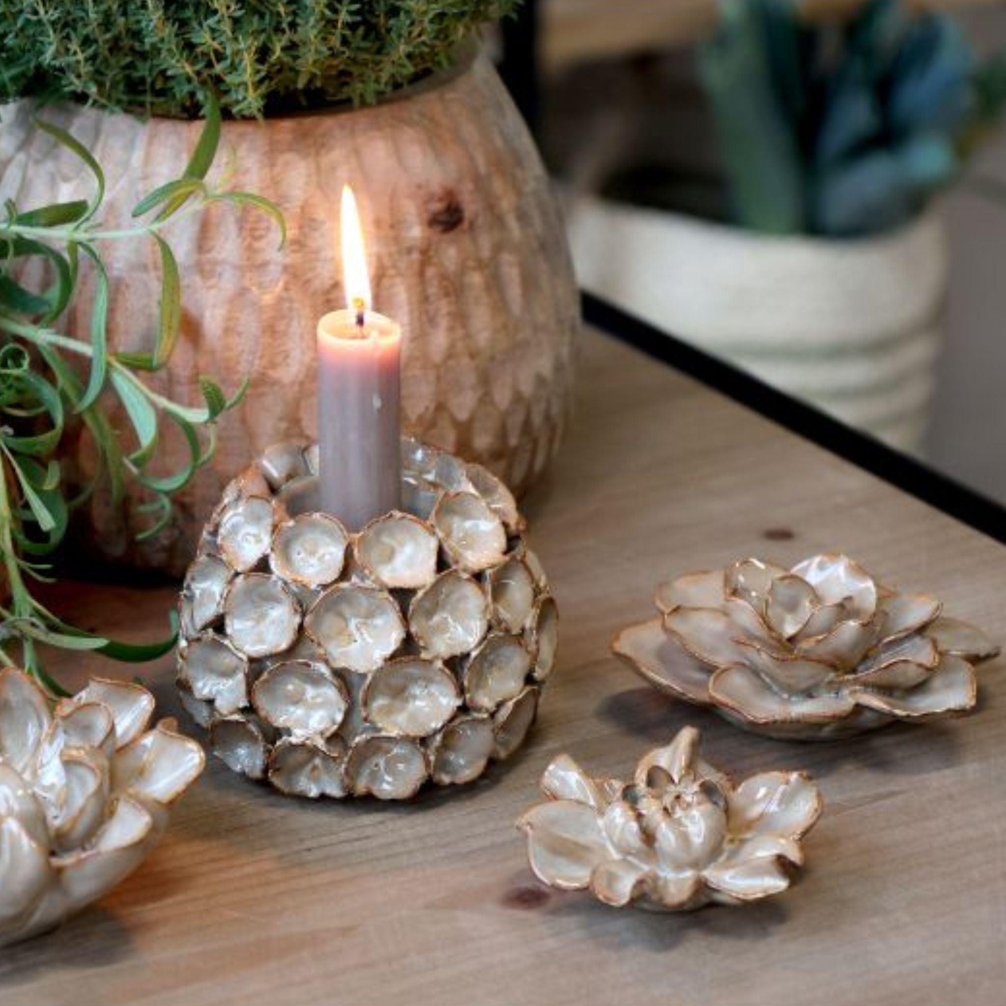 Verleihen Sie Ihrem Interieur mit einer mokkafarbenen Keramikblume Wärme und Eleganz. Der natürliche Farbton und das edle Design sorgen für einen stilvollen Ausdruck, der Ruhe und Charme in Ihr Zuhause bringt.