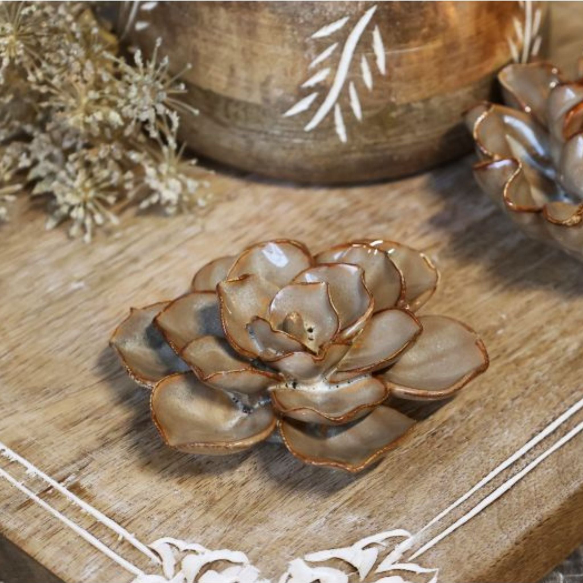Mokkafarbene Blume aus Keramik - Chic Antique