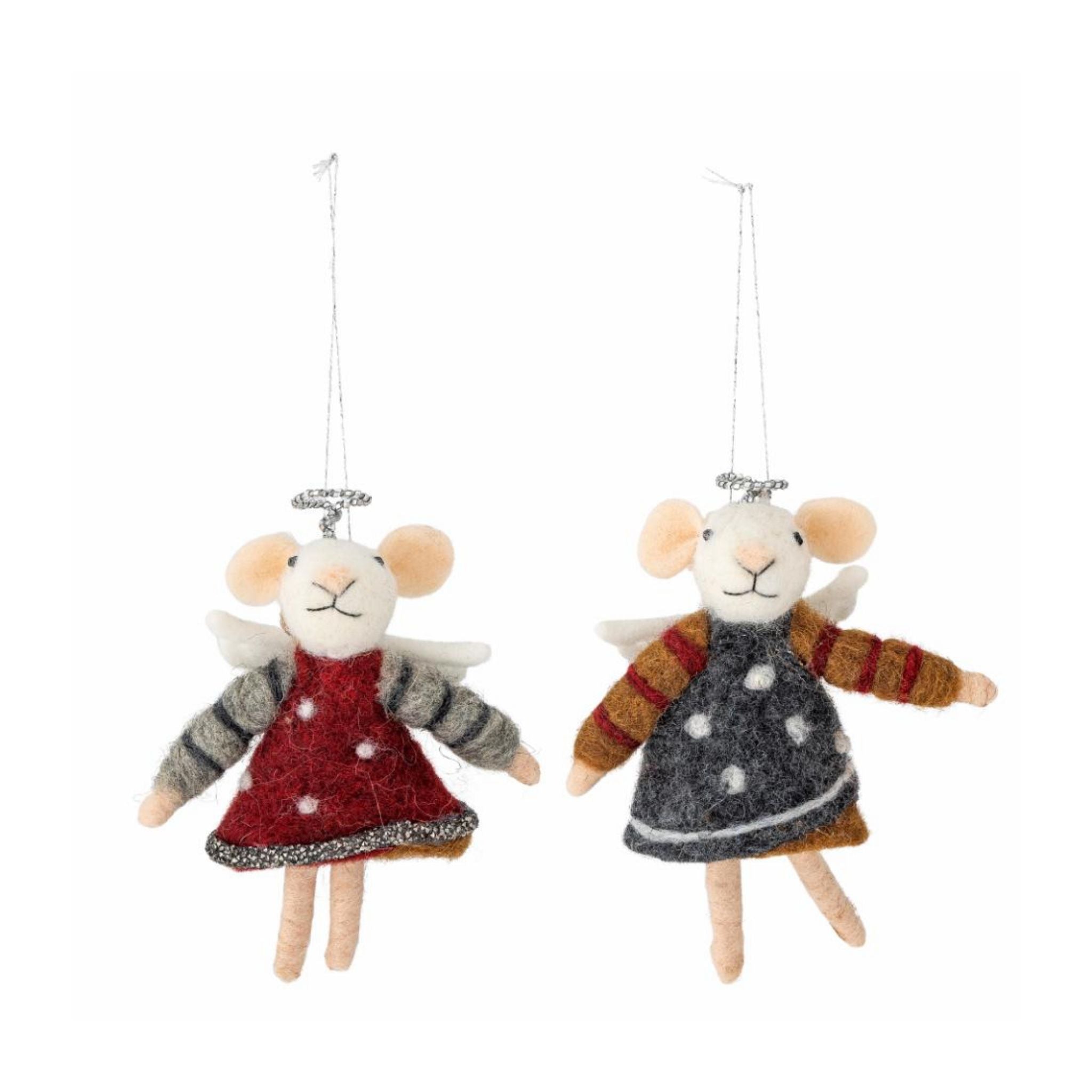 Das Peo Ornament von Bloomingville zeigt zwei niedliche Mäuse, die aus Wolle gefilzt und mit kleinen Engelsflügeln und feinen Details verziert sind. Ihr charmanter Ausdruck verleiht der Weihnachtsdekoration eine verspielte und märchenhafte Note. Jede Maus hat eine silberfarbene Schnur, sodass sie einfach an den Weihnachtsbaum, einen Ast oder in ein festliches Gesteck gehängt werden können.