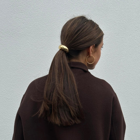 Giv din hestehale et elegant løft med Arabella hårelastik fra Pico Copenhagen. Metallet tilføjer et moderne og stilrent udtryk, der gør selv den mest enkle frisure både sofistikeret og cool. Findes både i guld og sølv farve.