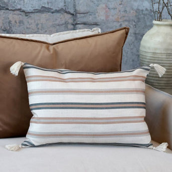 Flot pudebetræk til pyntepude med striber i farverne cognac og latte. Denne pude kan nemt sættes sammen med andre farver alt efter stil og ønske.