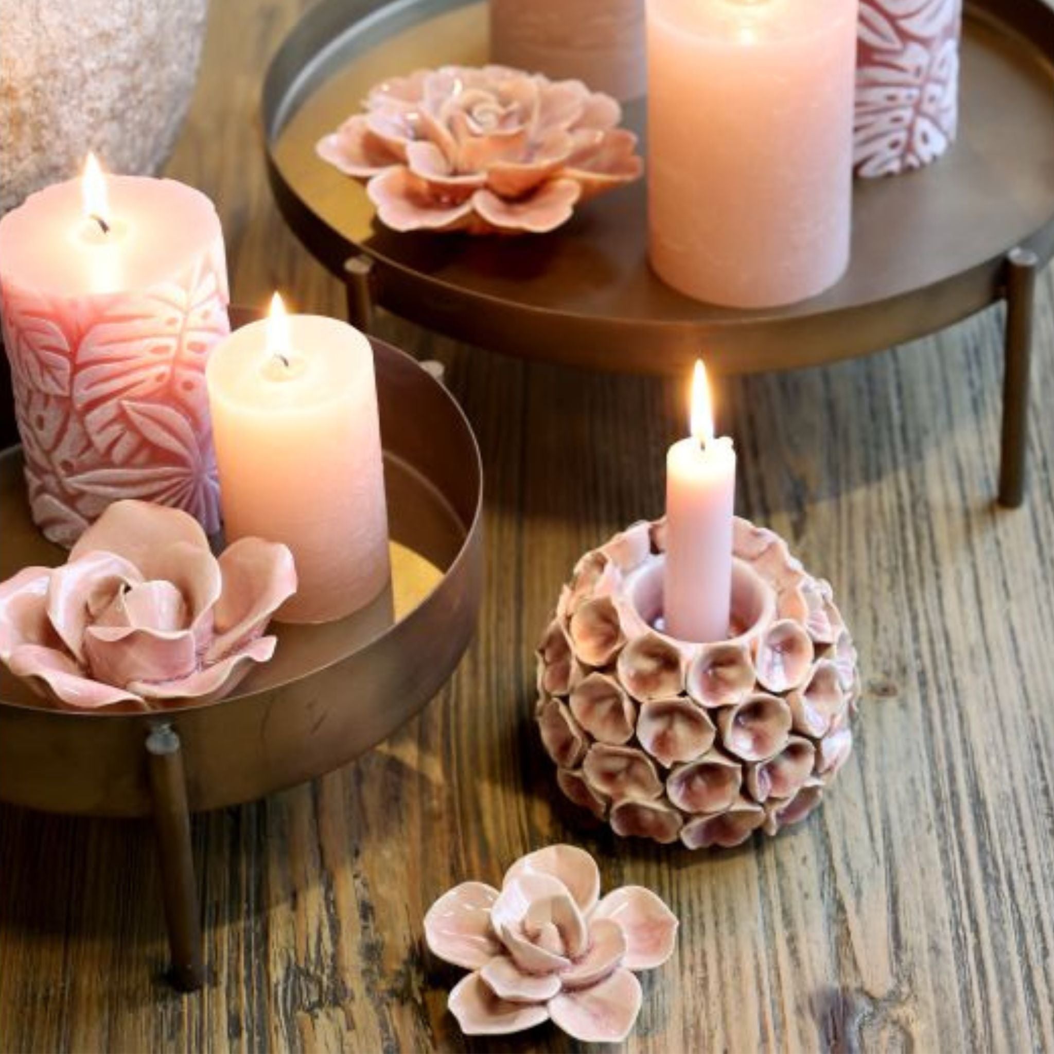 Kreieren Sie einen romantischen und dekorativen Look mit einer rosa Keramikblume, die in verschiedenen Varianten erhältlich ist. Die zarte Form und die sanfte Farbe verleihen einen zeitlosen Touch, der wunderbar in jedes Interieur passt.