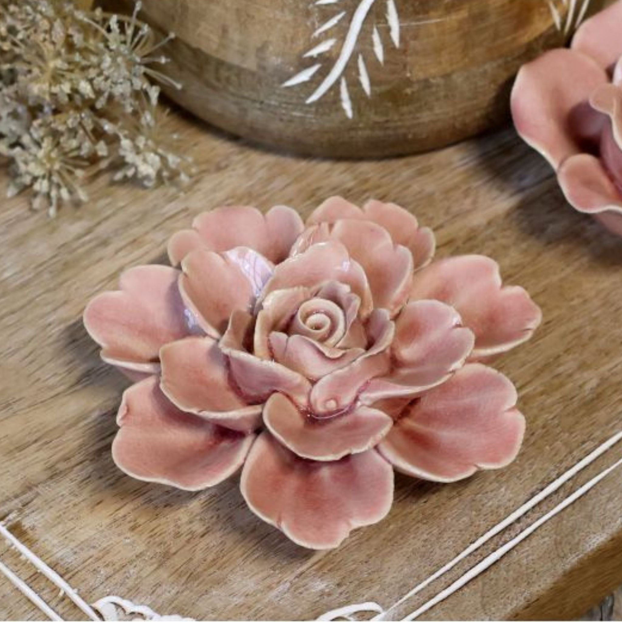 Rosa Blume aus Keramik, mehrere Varianten - Chic Antique