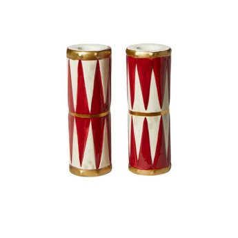 Verleihen Sie Ihrer Einrichtung ein festliches und einzigartiges Detail mit diesem bezaubernden trommelförmigen Vasen-/Kerzenhalter in Rot und Weiß. Das kreative und farbenfrohe Design bringt Leben und Freude in jeden Raum, egal ob Sie es als elegante Vase für Ihre Lieblingsblumen oder als stimmungsvollen Kerzenhalter für Kerzen verwenden.