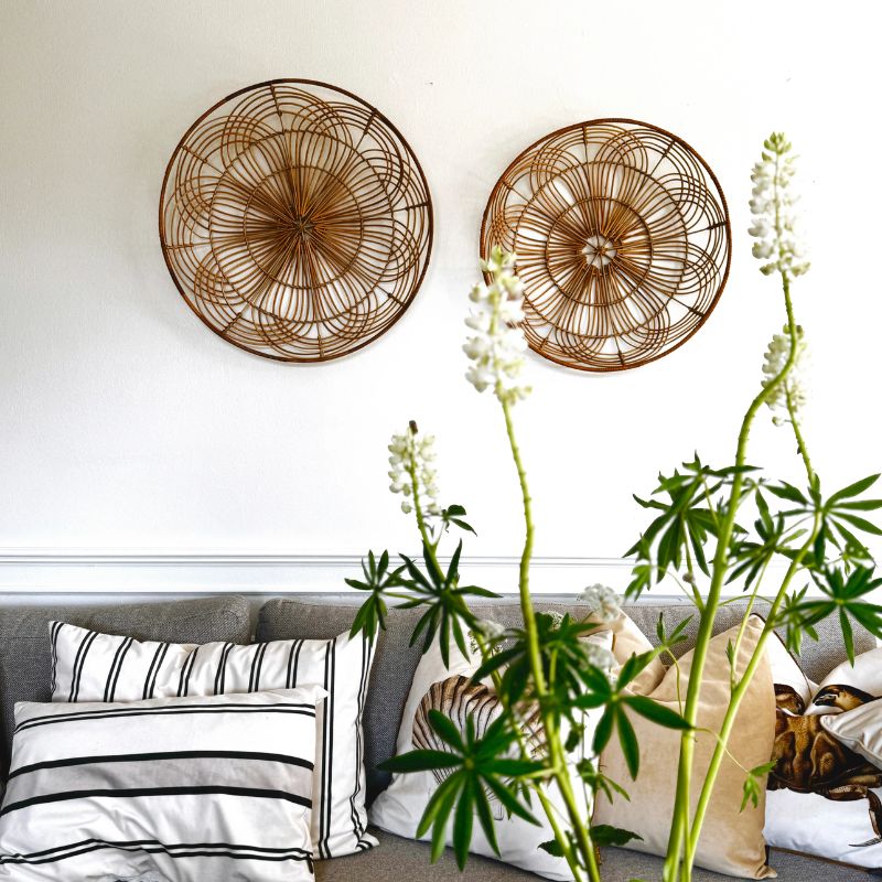 Skab en varm og hyggelig atmosfære i hjemmet med disse smukke vægdekorationer i rattan fra mærket Vanilla Fly. De skønne detaljer giver i ægte og organisk udtryk, som passer perfekt ind i både boheme, nordisk og naturinspireret indretning.