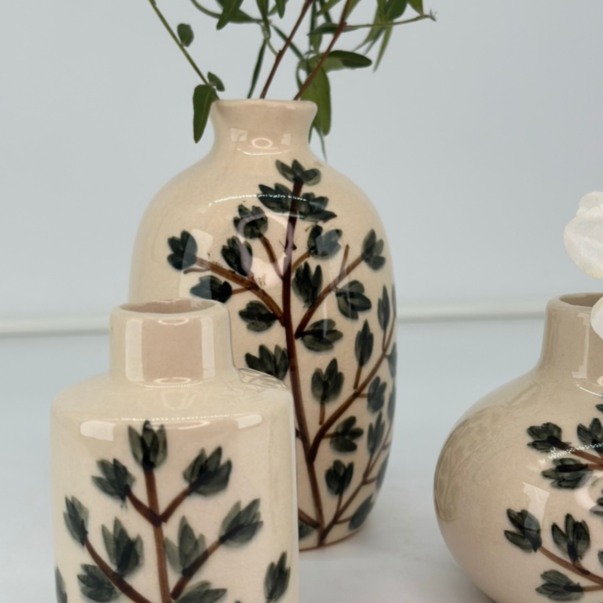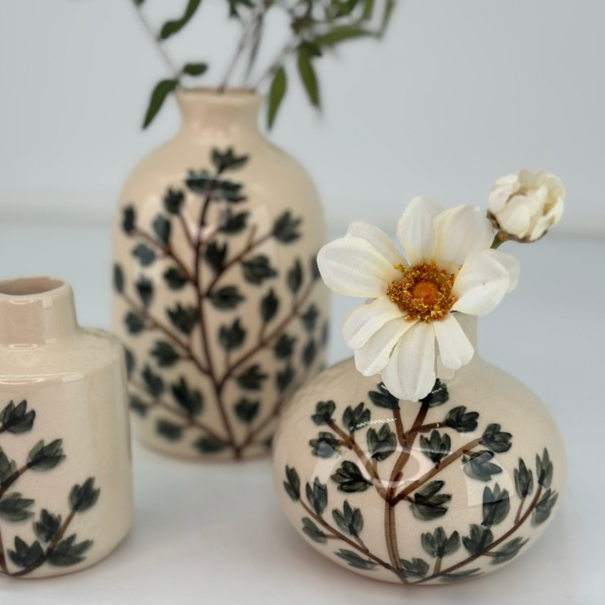 Smuk og dekorativ vase med håndmalet motiv. Vasen er kun malet på den ene side, hvilket gør det muligt at variere vasens udtryk.