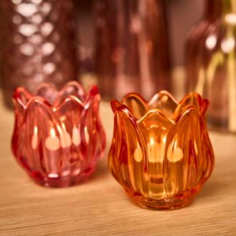 Festlig fyrfadsstage eller vase, i glas formet som en tulipan.